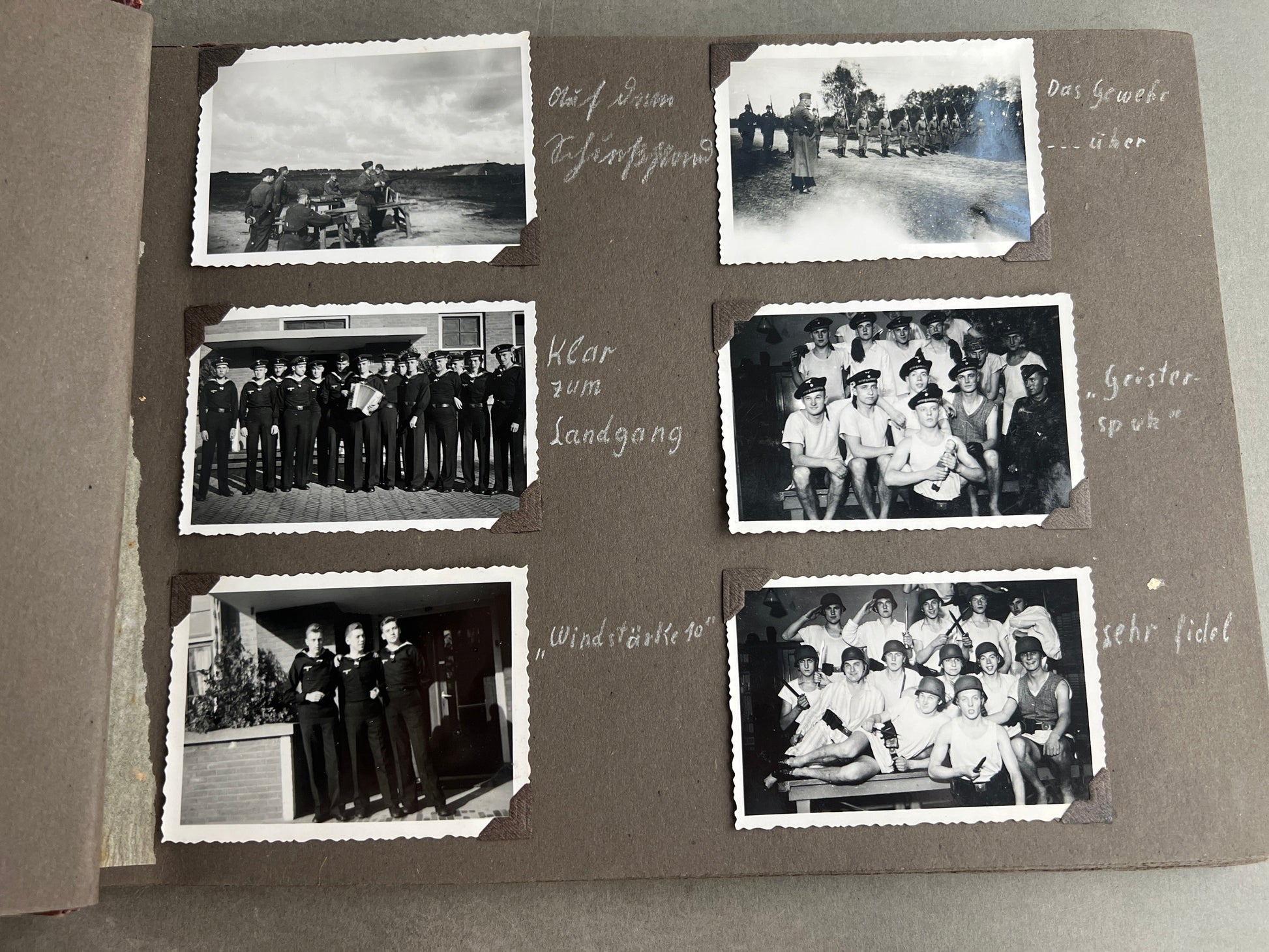 WW2 Tysk Kriegsmarine Fotoalbum. Gode billeder af soldater, skibe, træning, mv. 59 billeder. Original.