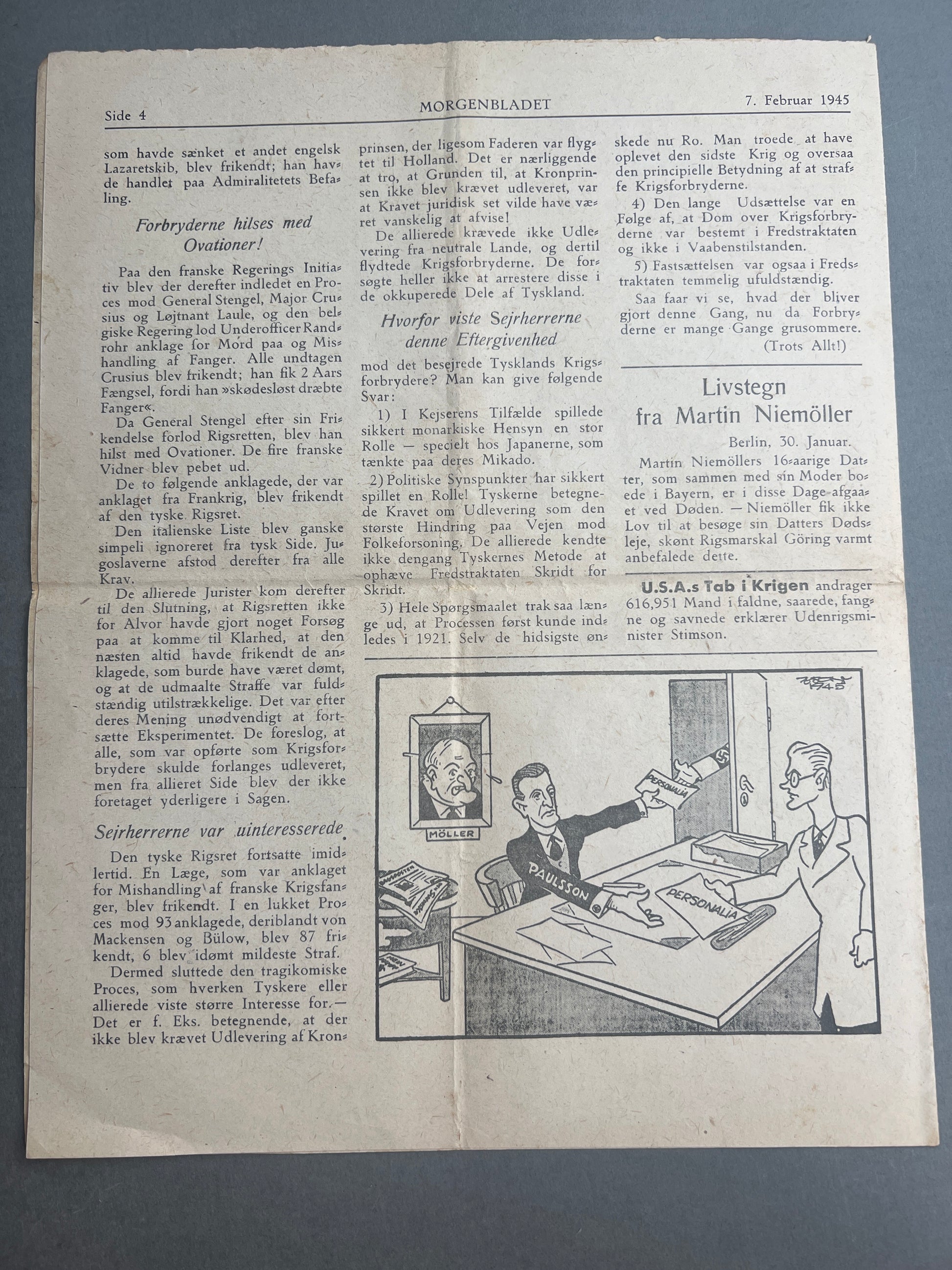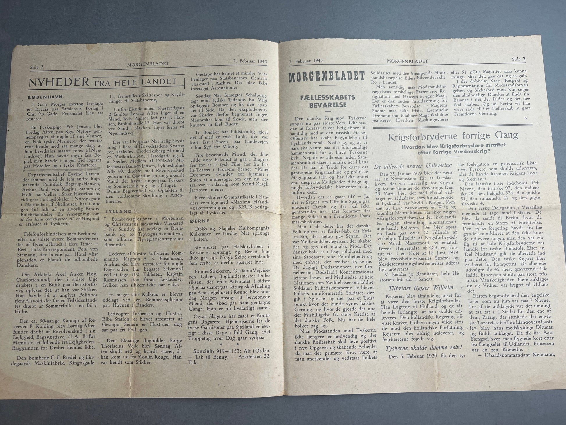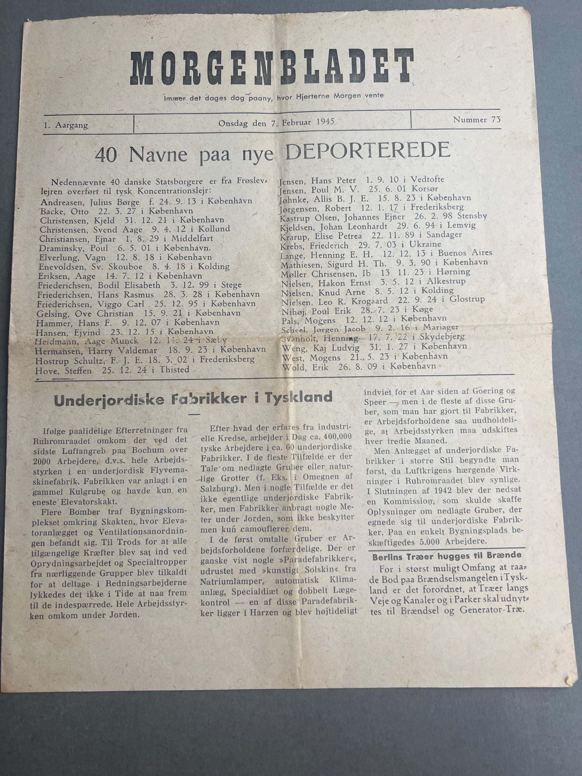 WW2 Dansk Illegal avis "MORGENBLADET" fra februar 1945. Original.