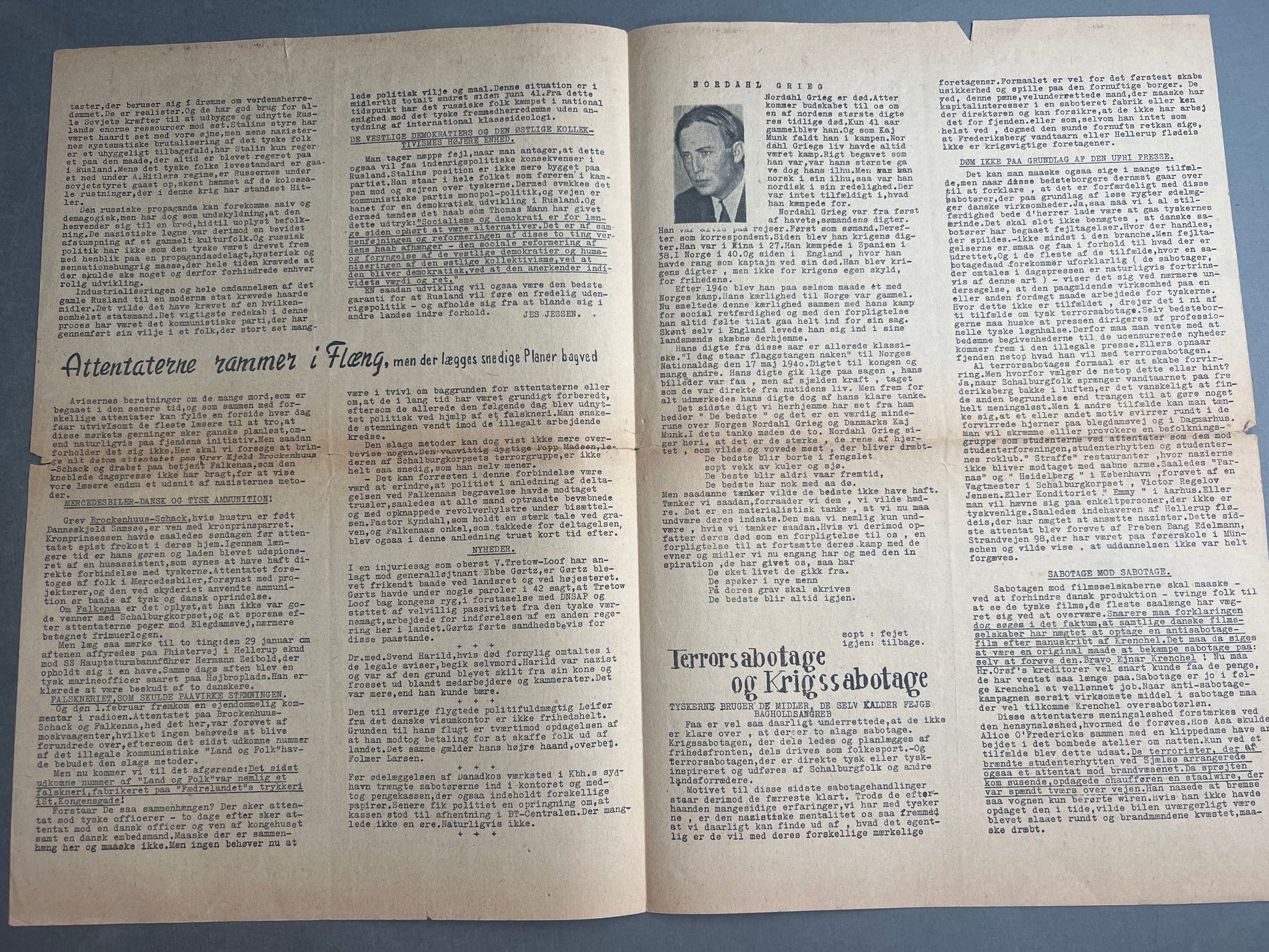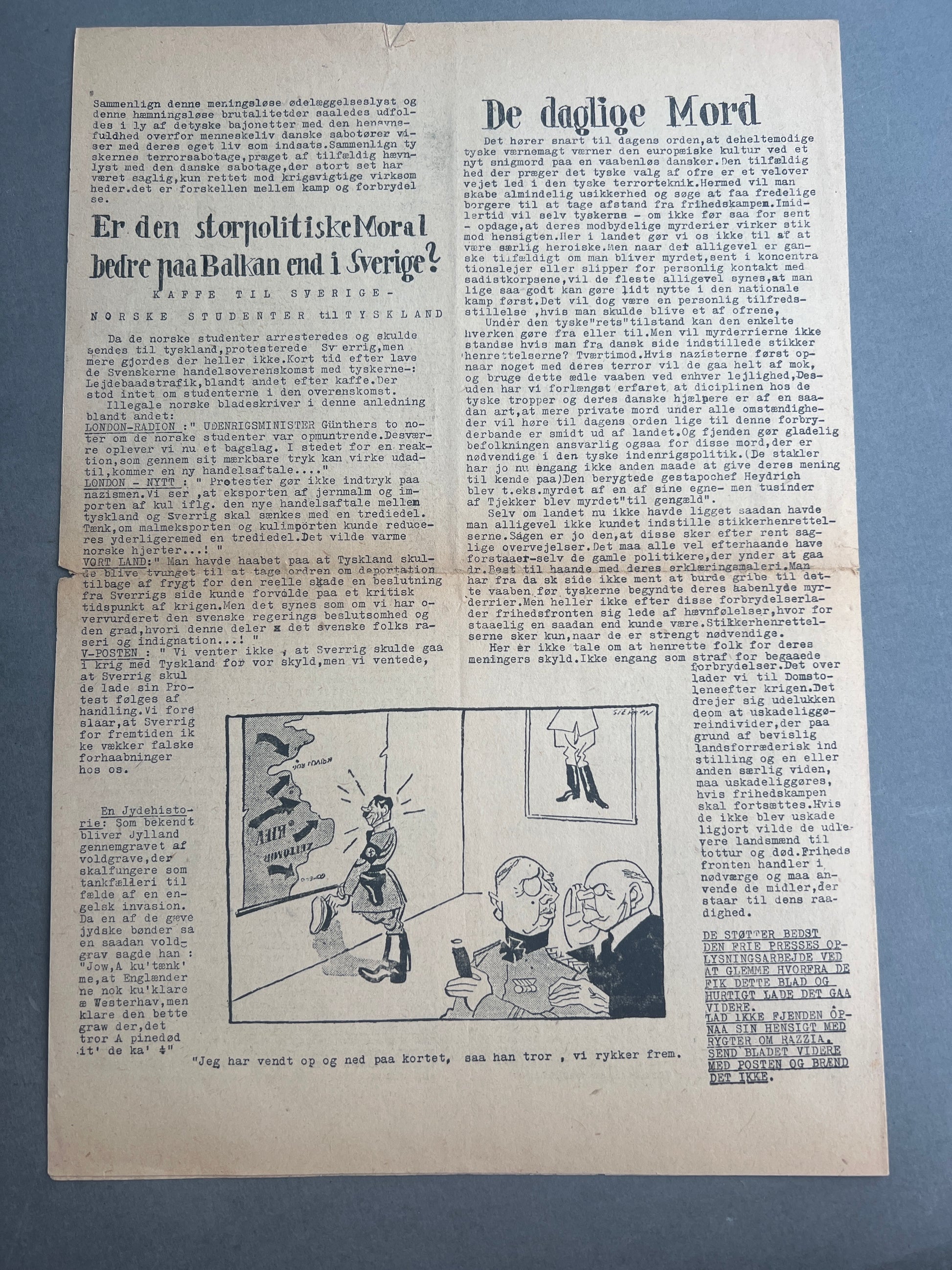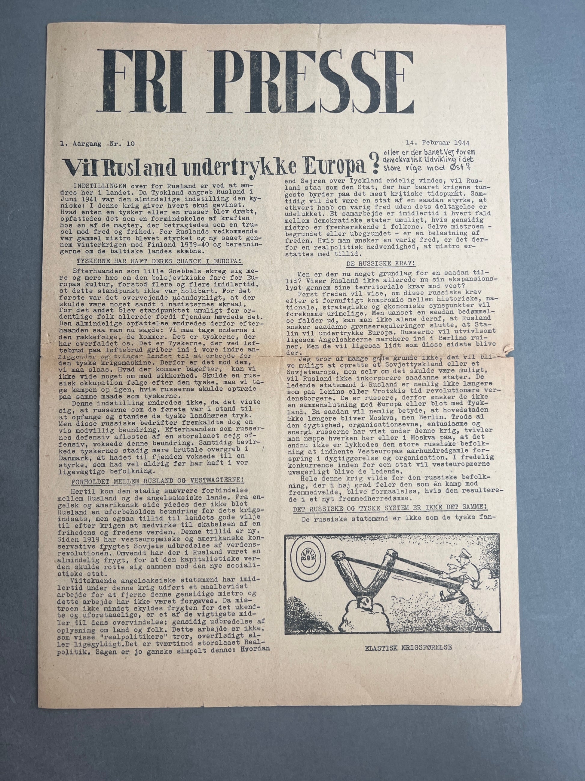 WW2 Dansk Illegal avis "FRI PRESSE" fra 1944. Original.