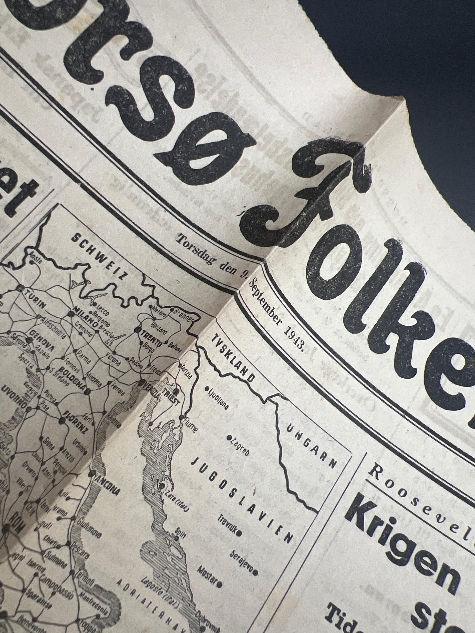 WW2 Dansk Avis "Morsø Folkeblad" fra 1943 om Italiens kapitulation. Original.