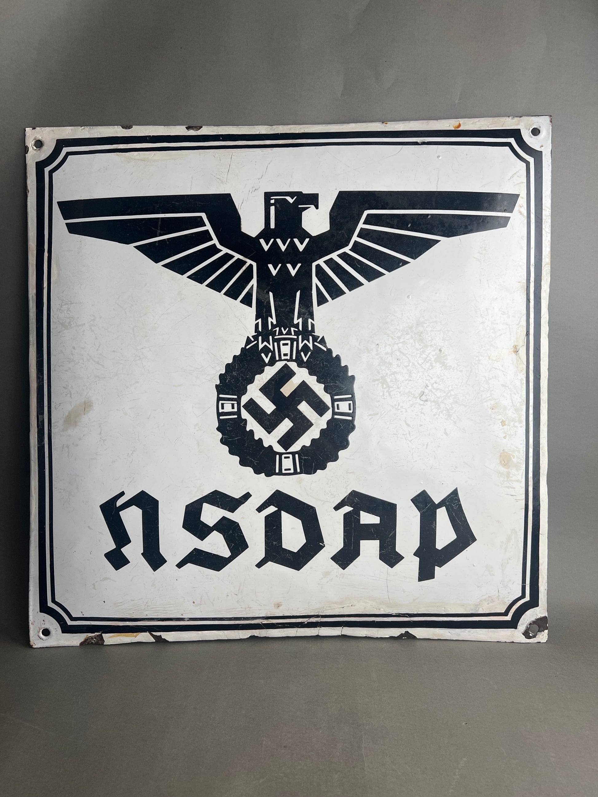WW2 Tysk Stort NSDAP Emalje Skilt. Stemplet med fremstiller og 1934. Sjælden! Original.
