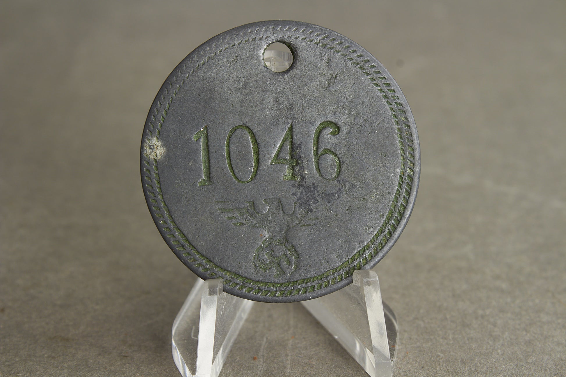 WW2 Tysk/Dansk Medarbejder "Nummertag". Brugt af dansk arbejdskraft for tyskerne. Sjælden. Original.