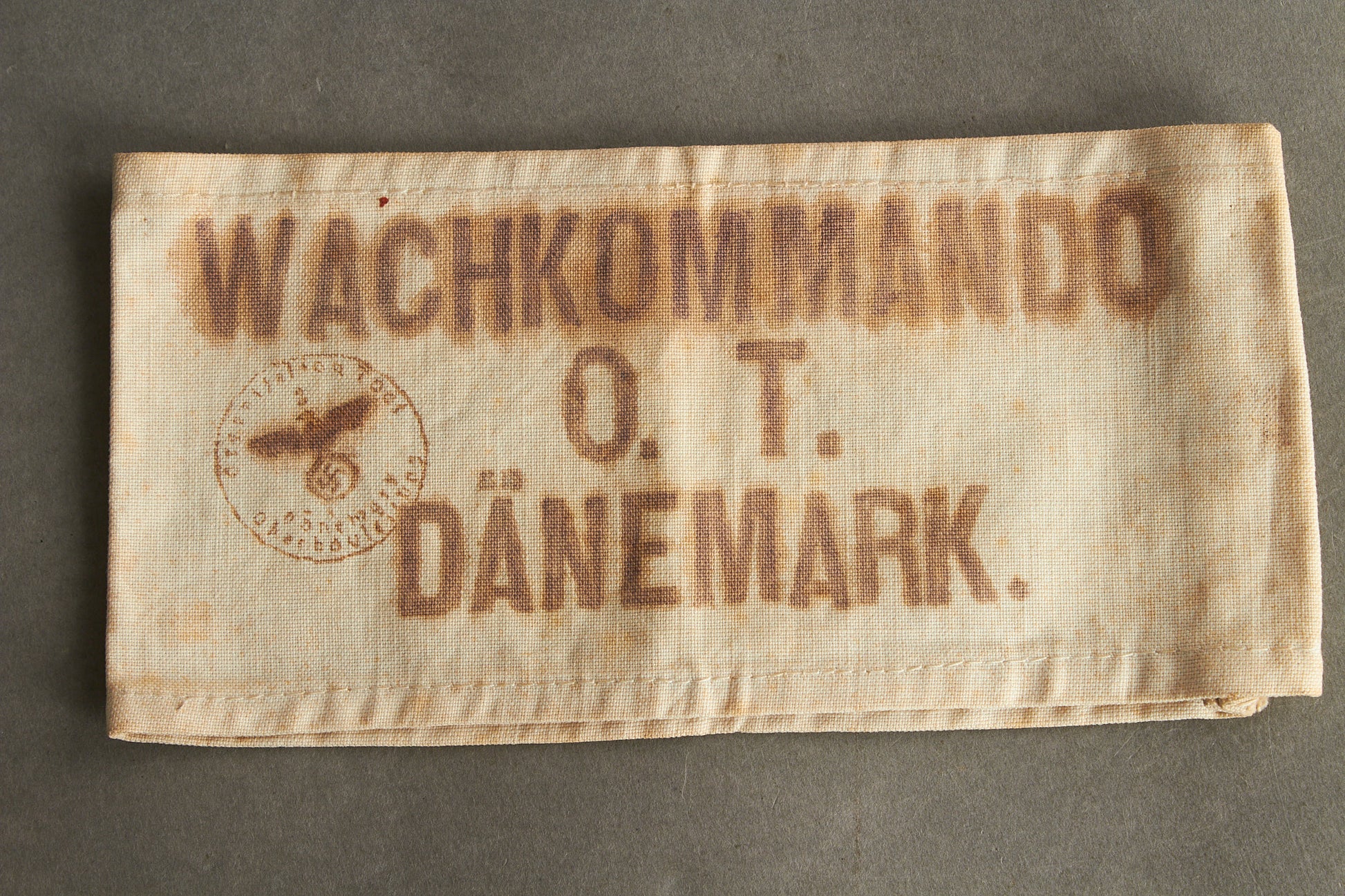 WW2 Tysk NSKK Organisation Todt "WACHKOMMANDO O.T. DÄNEMARK" Armbind. UV-Negativ, sælges som kopi.