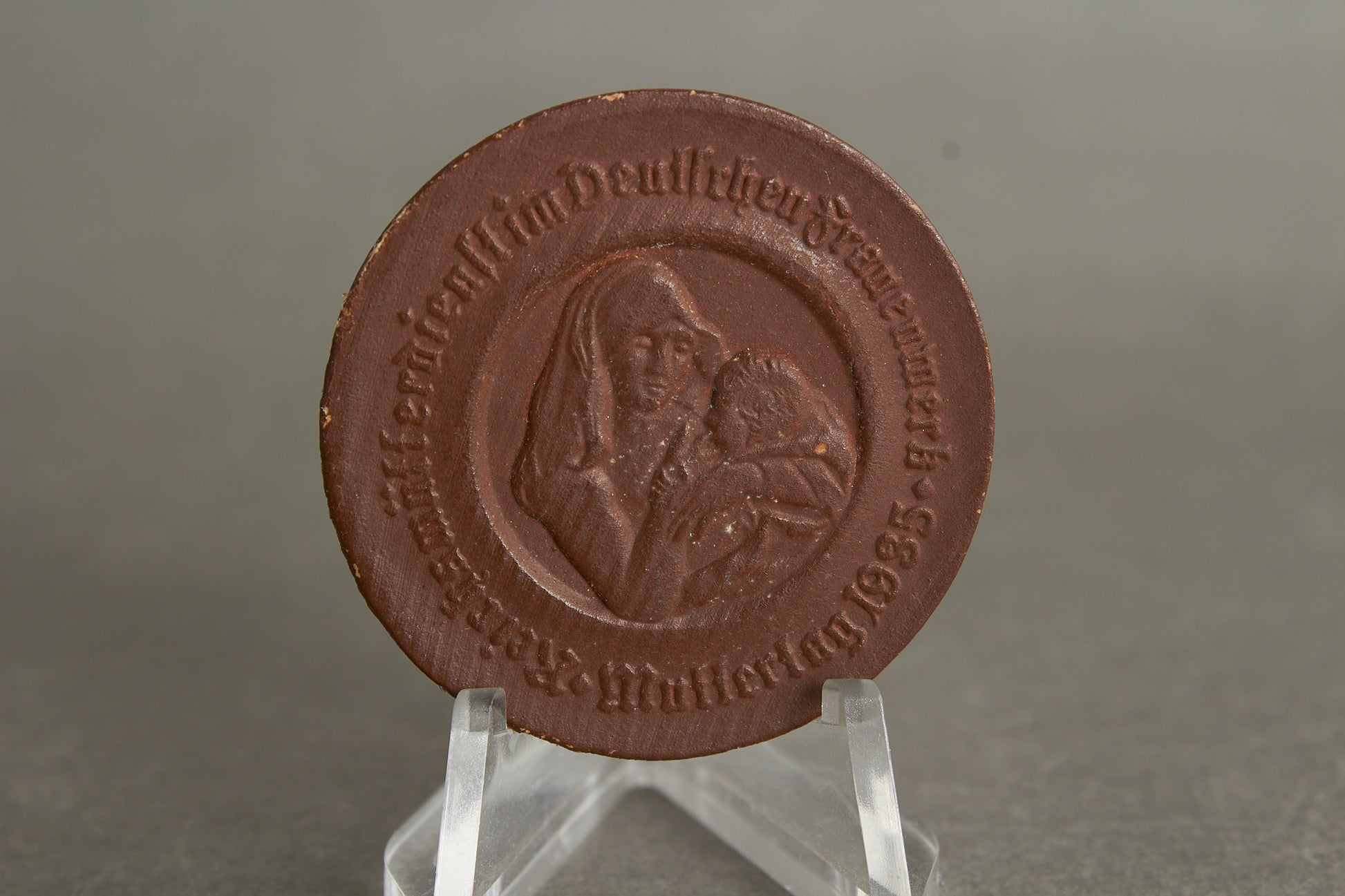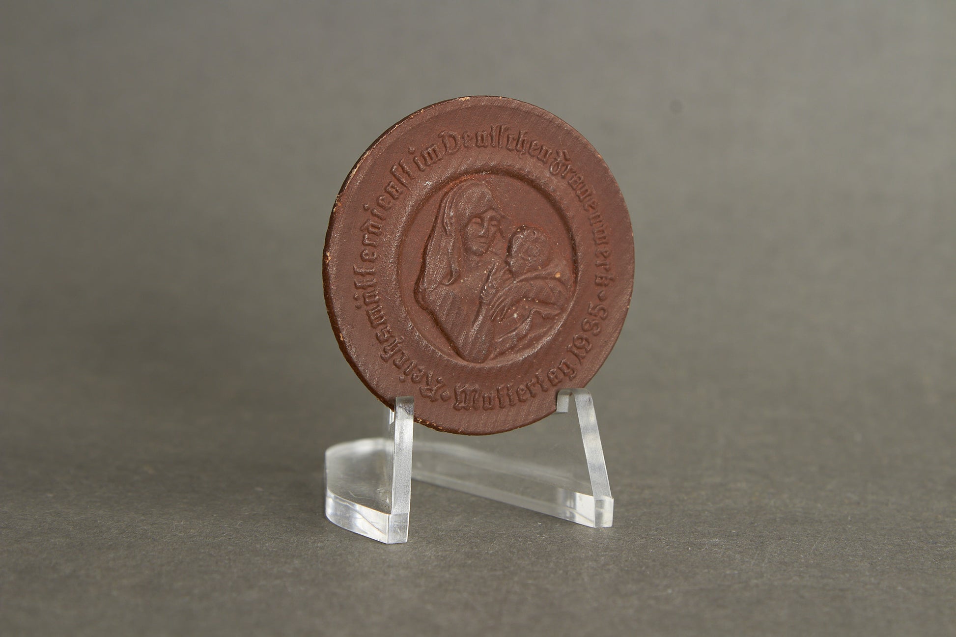 WW2 Tysk "Mutter und Kind" Tinnie i træ. Original.