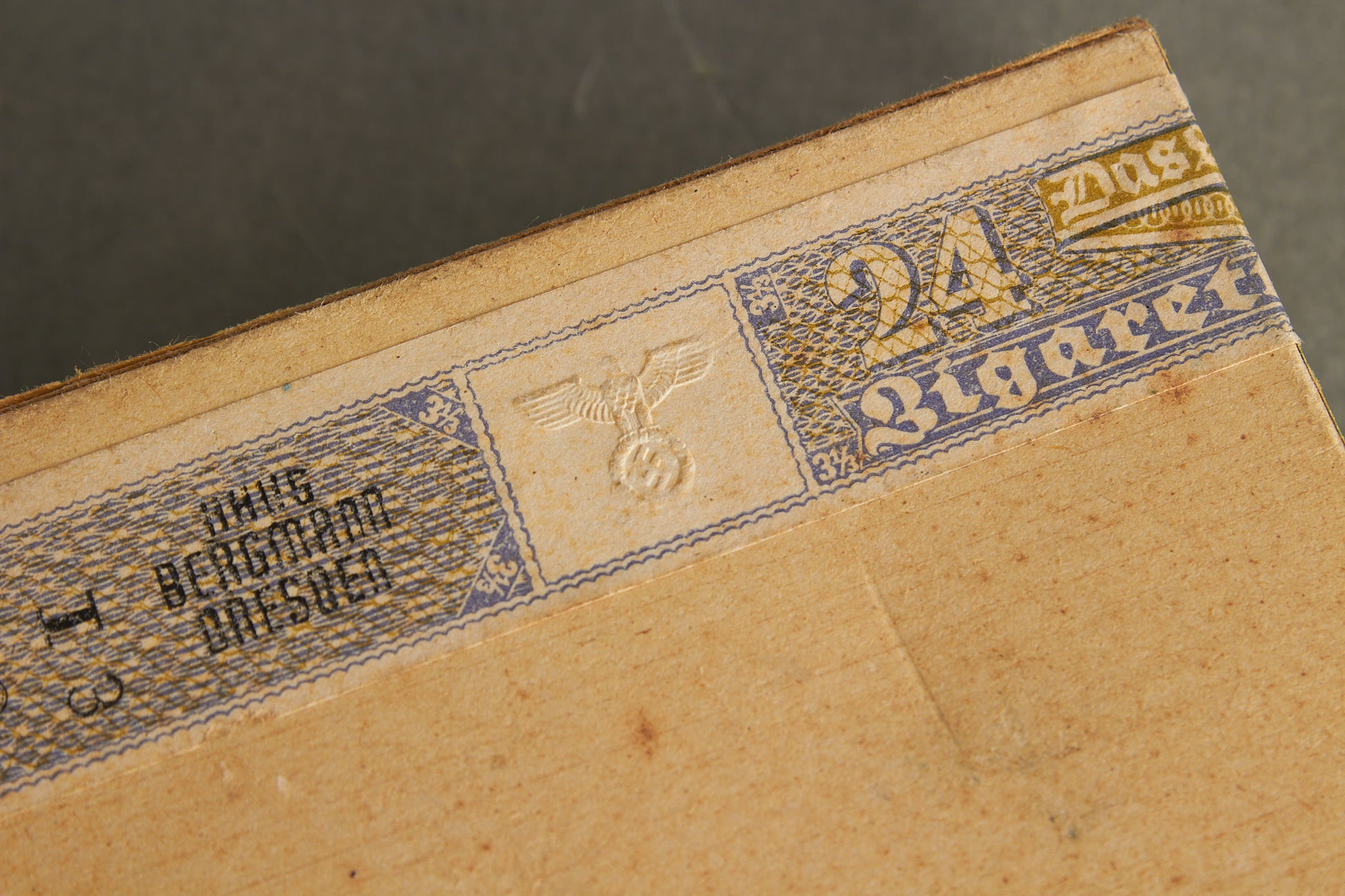 WW2 Tysk cigaretpakke. Ubrudt. Med banderole og ørn. Ses ikke tit. Original.