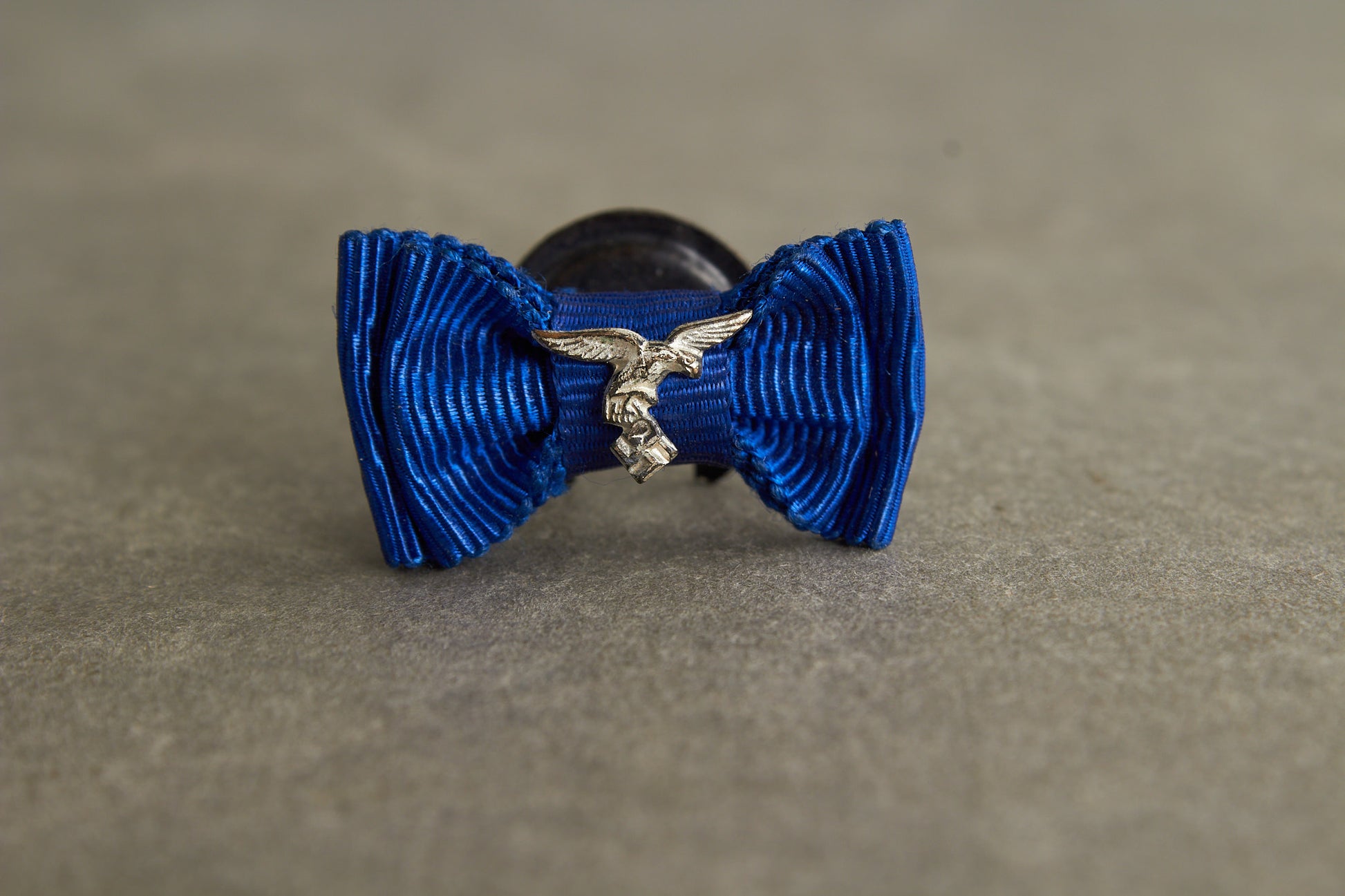 WW2 Tysk Luftwaffe "Dienstauszeichnung für 18 Jahre" Knaphulsspange (Sløjfen er dobbelt med sølv - og ikke guld - ørn = 18 år). Sjælden. Original.