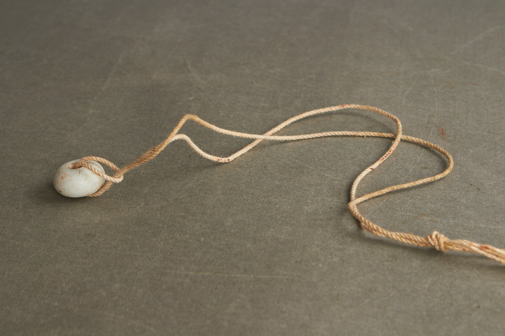 WW2 Tysk Porcelænskugle i træksnor til Stavhåndgranaten. Original.
