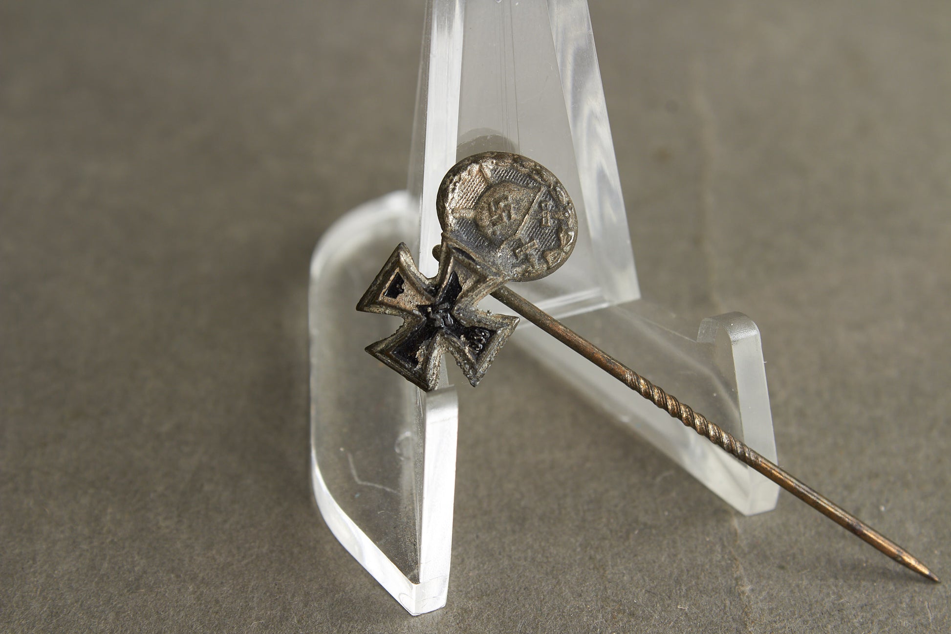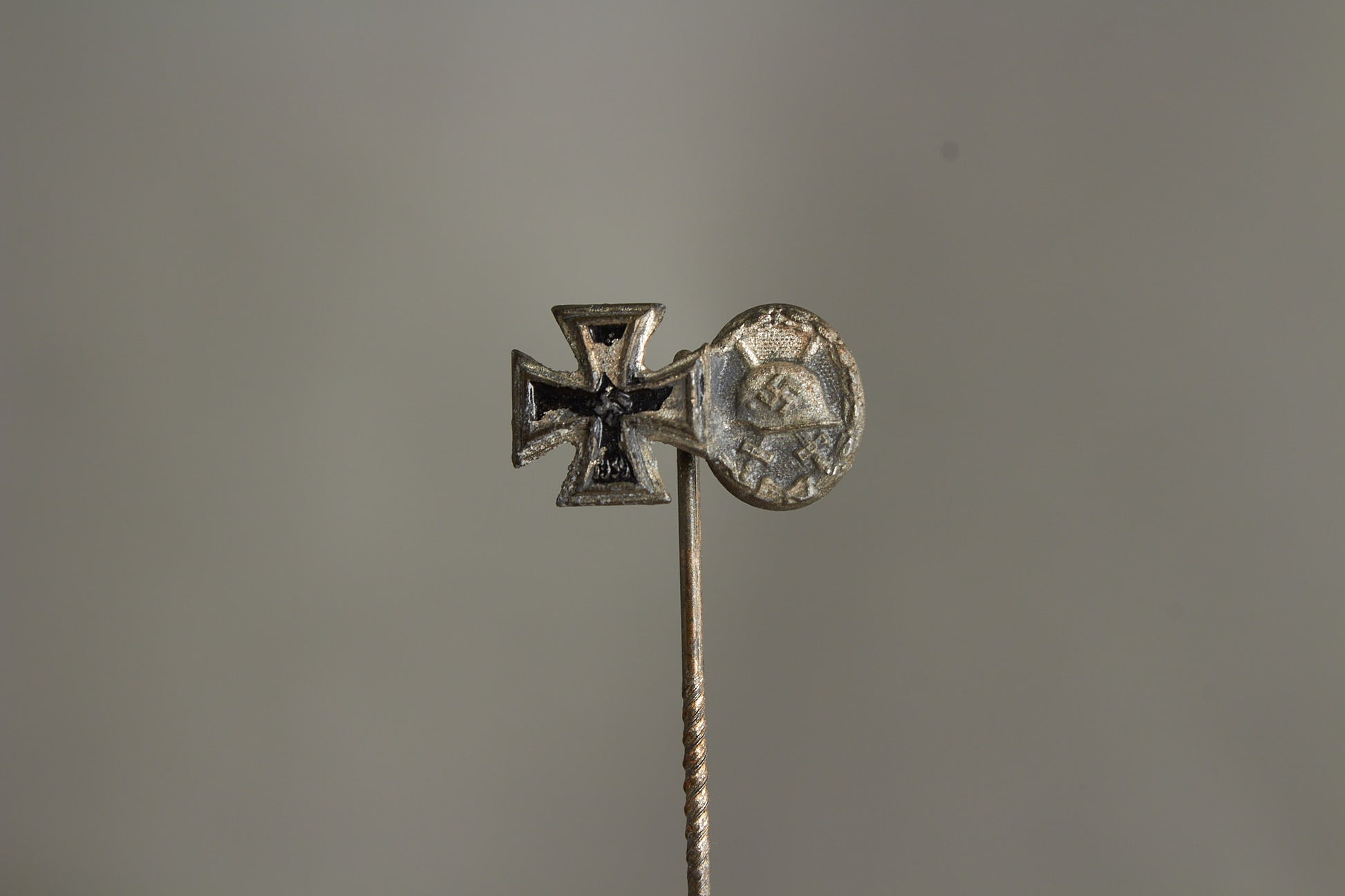 WW2 Tysk Jernkors og Sårettegn i Sølv Miniature Pin. Original.