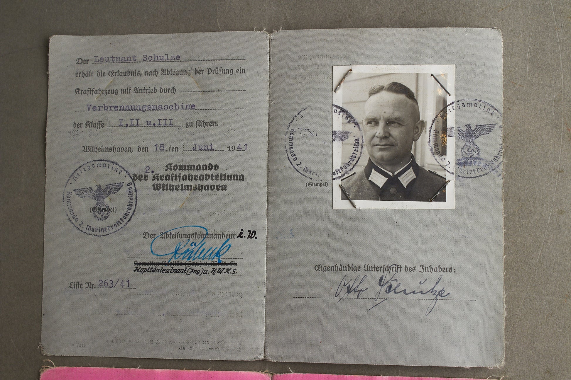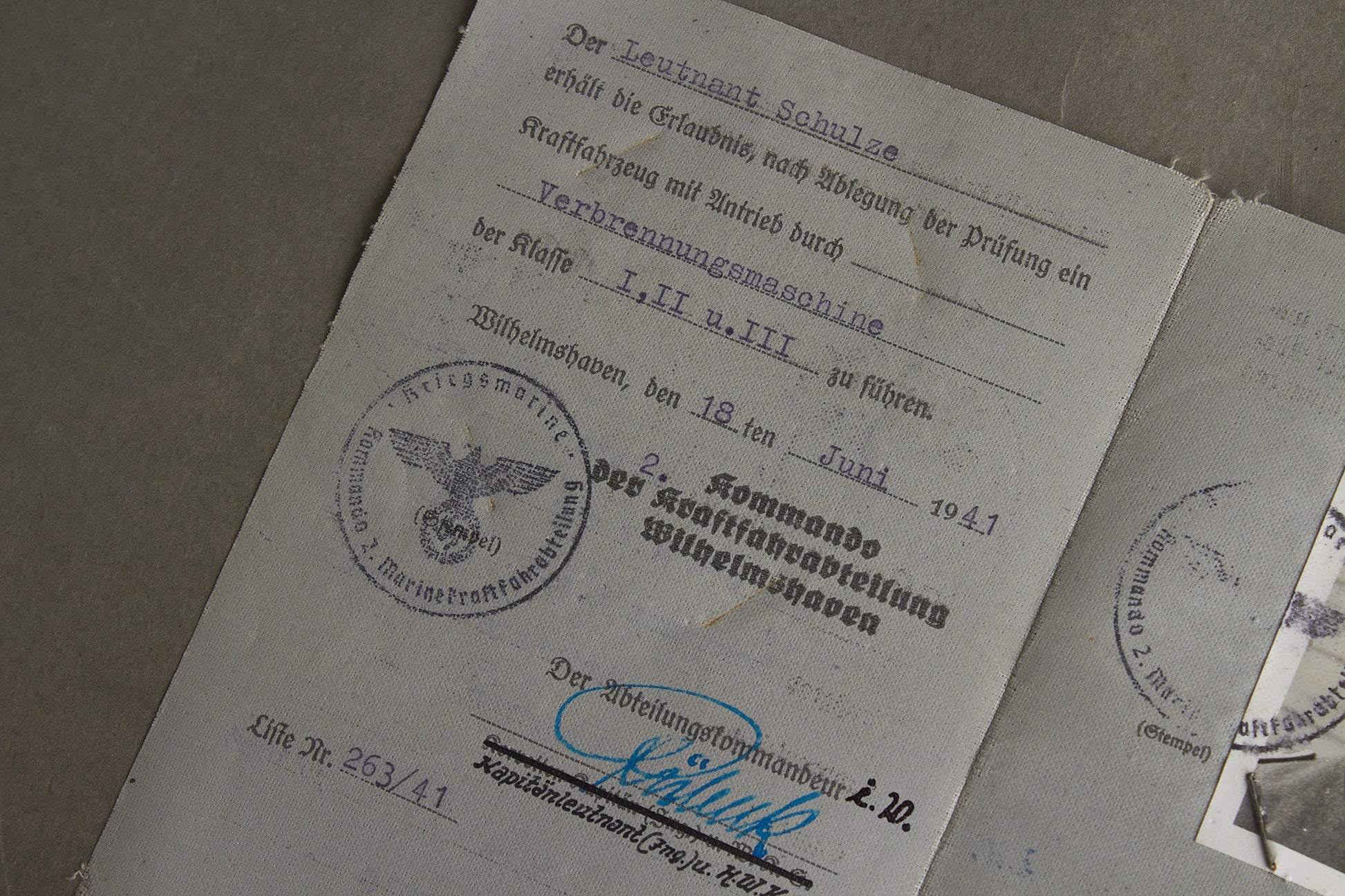 WW2 Tysk Kriegsmarine "Führer- & Fahrlehrerschein" fra "Kommando der Marinestation der Nordsee". Sjælden. Original.