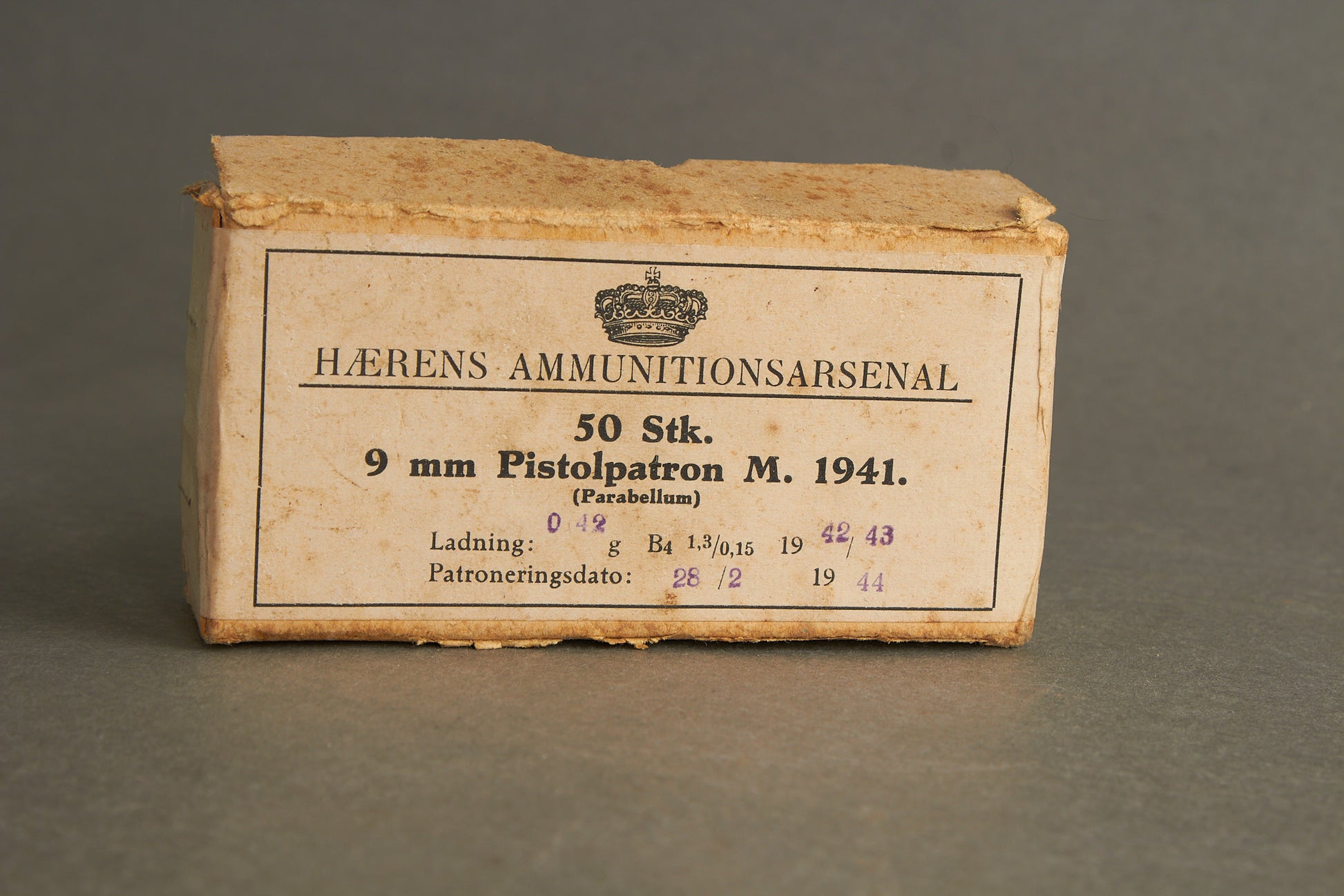 WW2 Dansk "9mm Parabellum" Patronæske. Fra 1944, typisk produceret til tyskerne. Original.