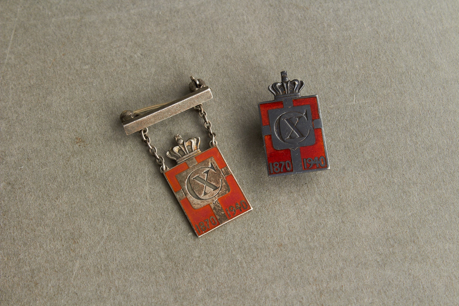 WW2 Danske Georg Jensen Kongemærker i ægte sølv. Original.