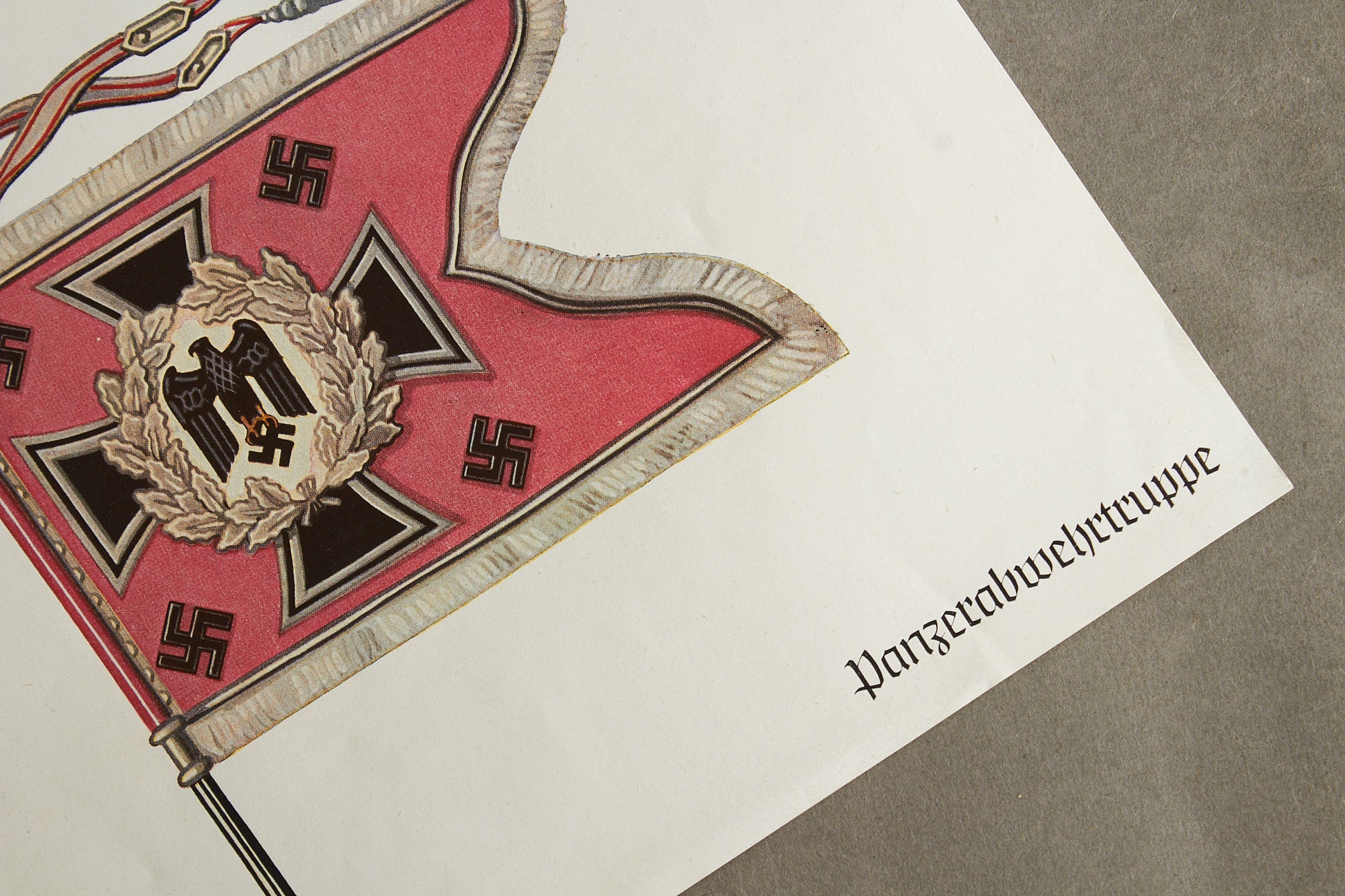 WW2 Tysk "Panzerabwehrtruppe" Standarte Tryk. Lidt mindre end A4 papir. Original.