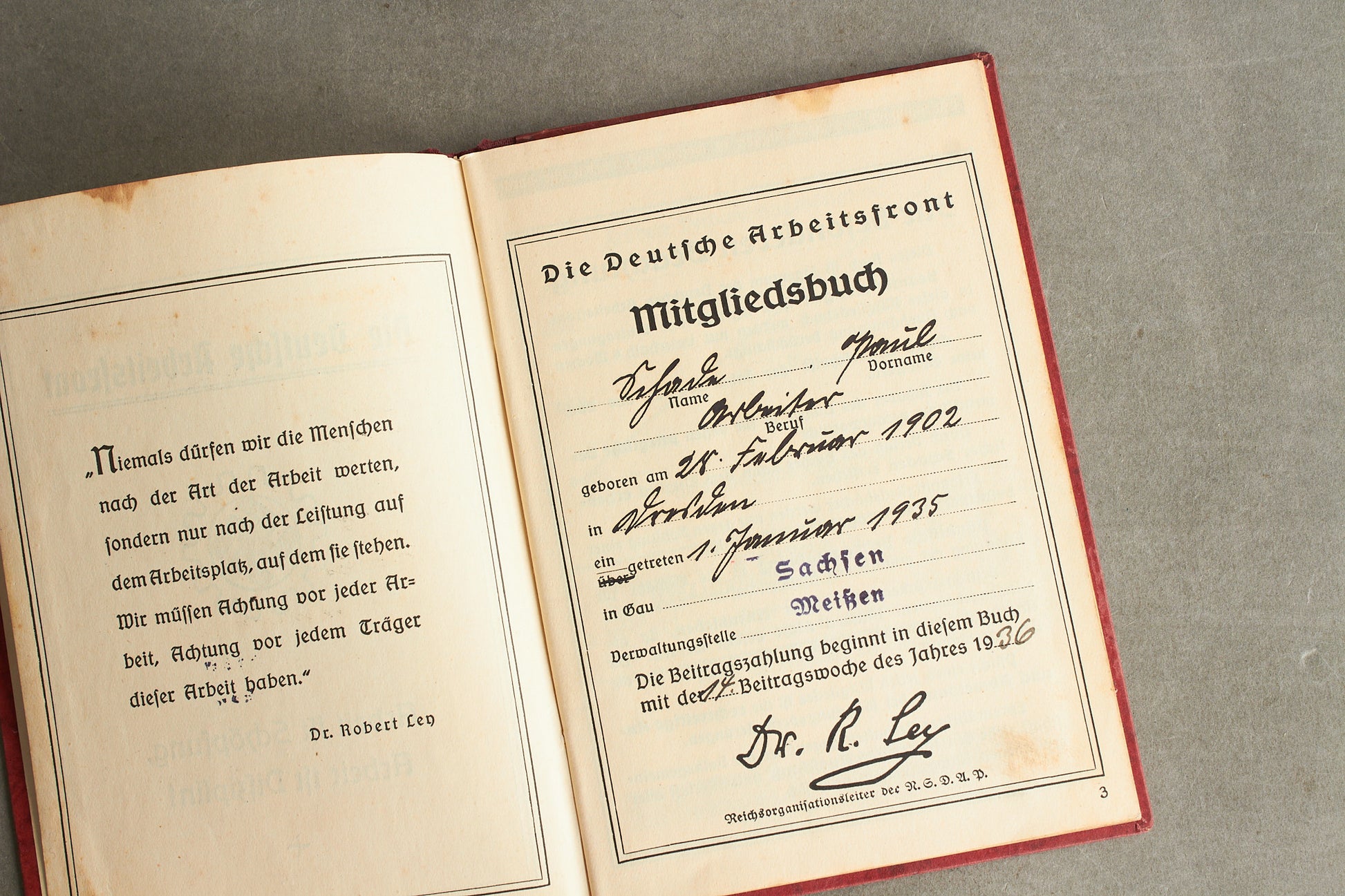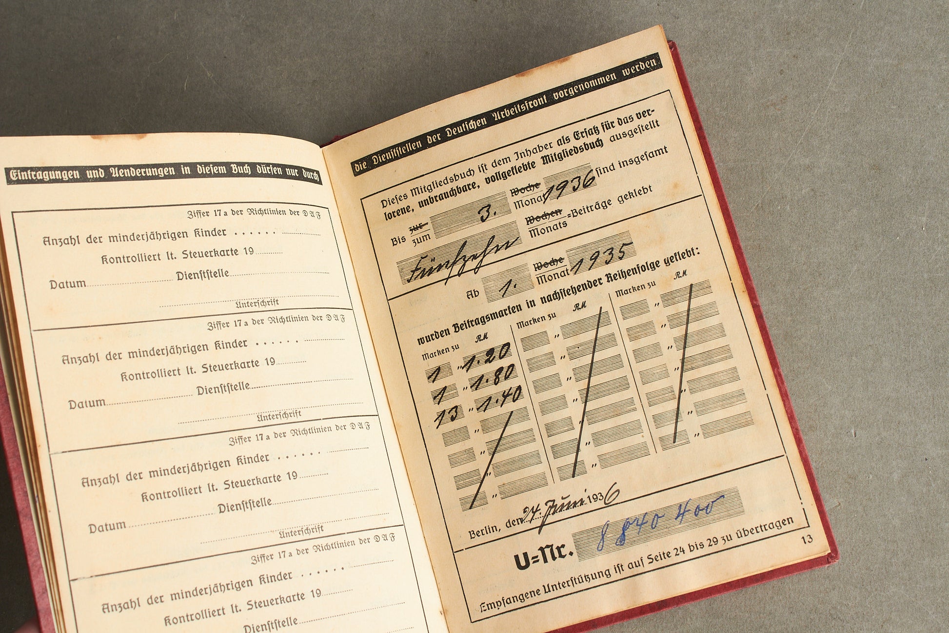 WW2 Tysk DAF Medlemsbog. Pænt udfyldt. Original.