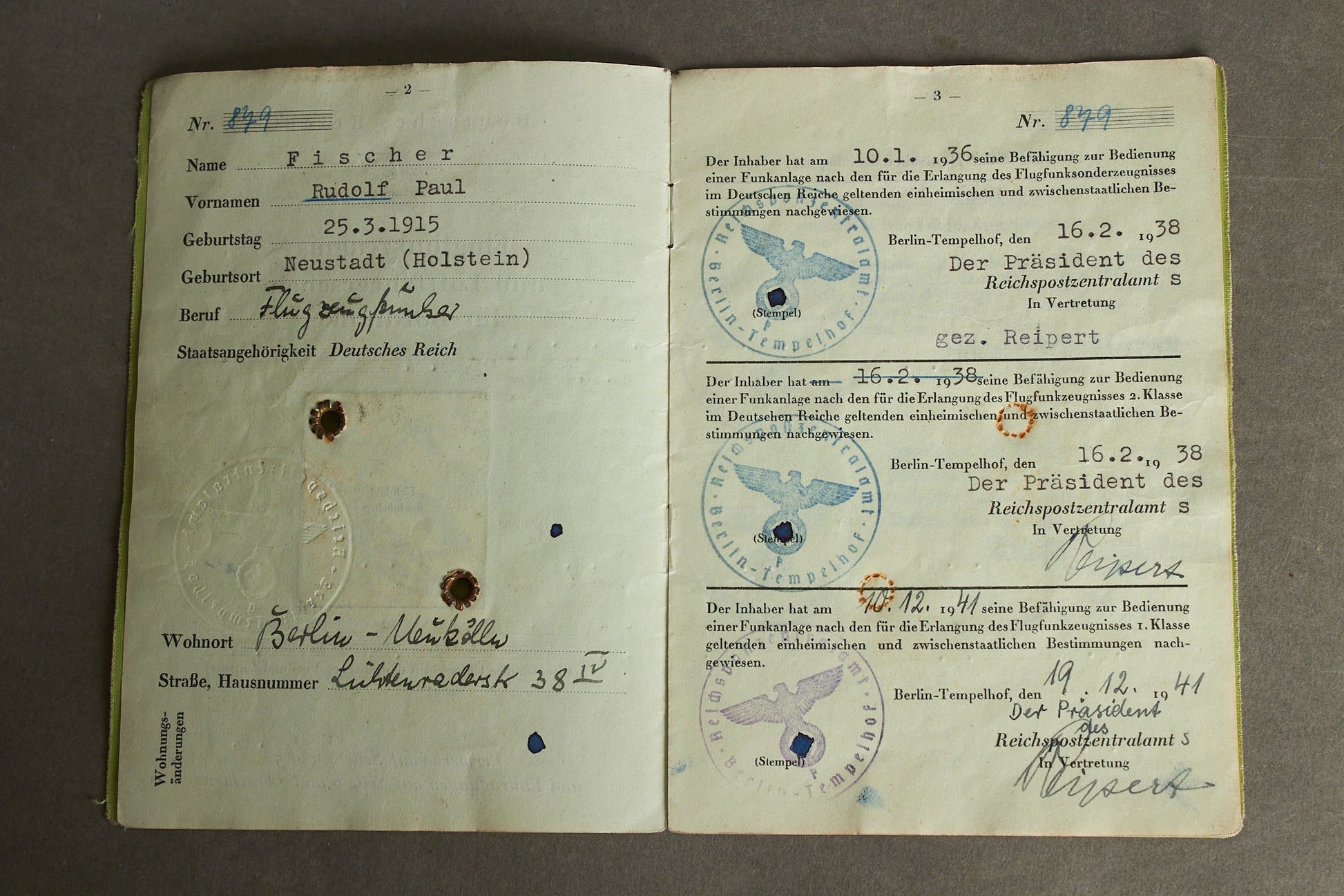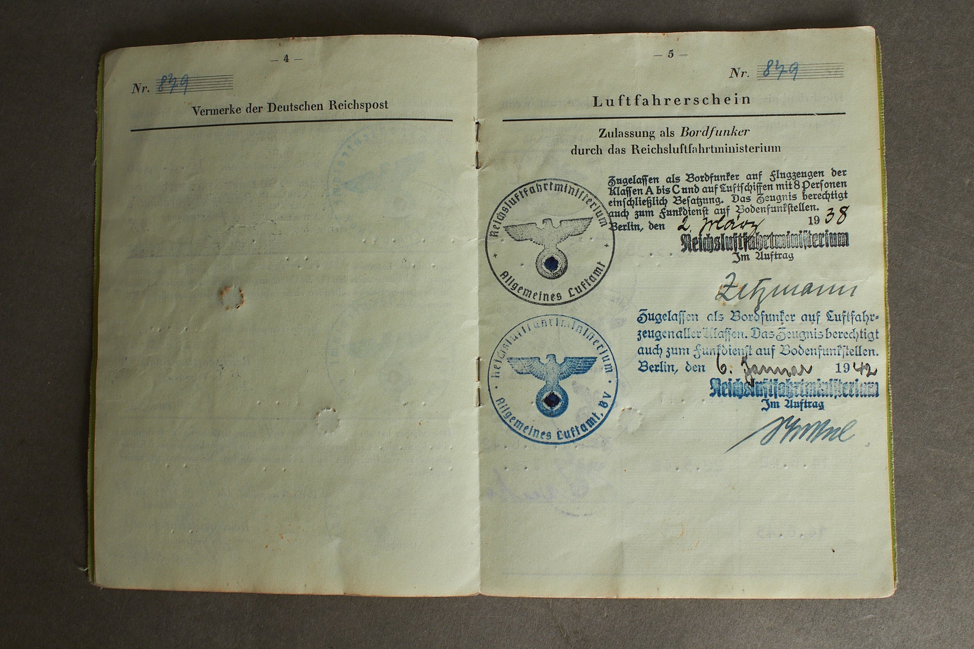 WW2 Tysk Luftwaffe "Flugfunkzeugniz und Luftfahrerschein für Bordfunker". Original.