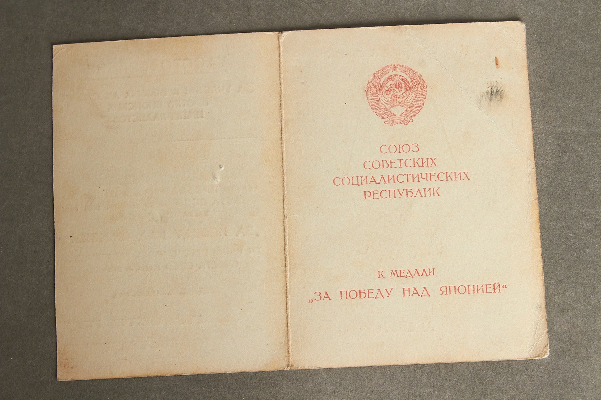 WW2 Russisk Medalje Urkunde fra 1946. Original.