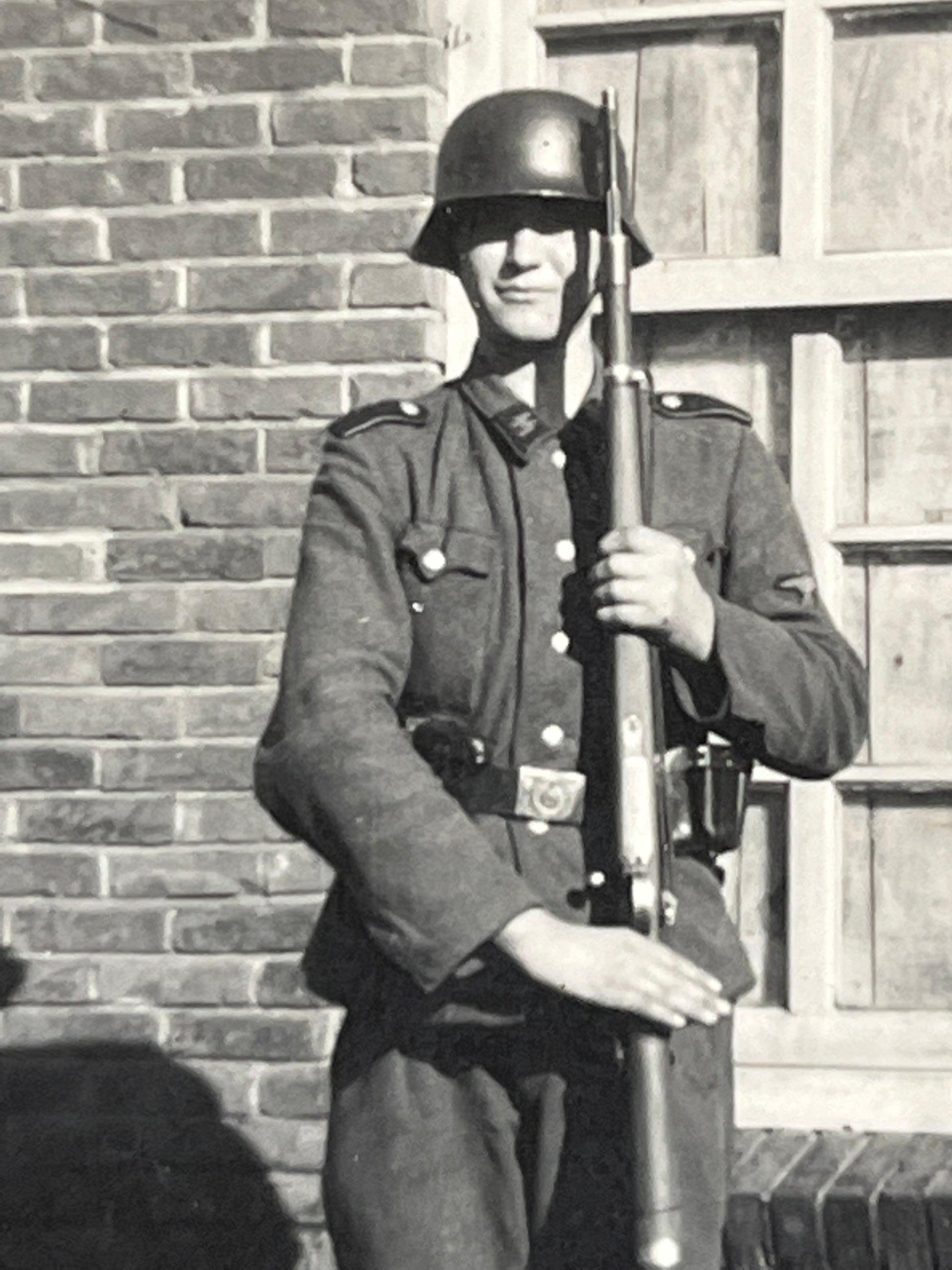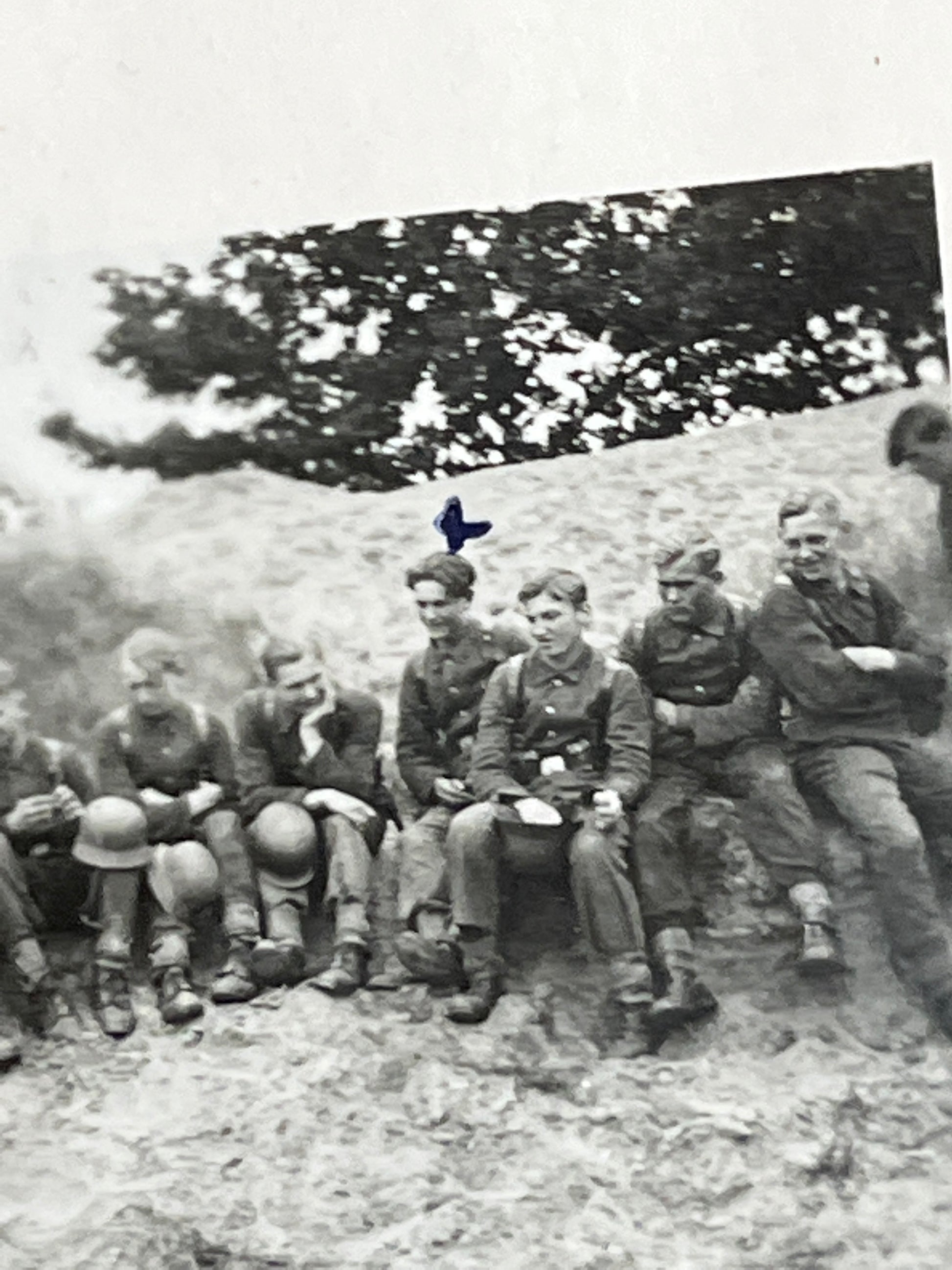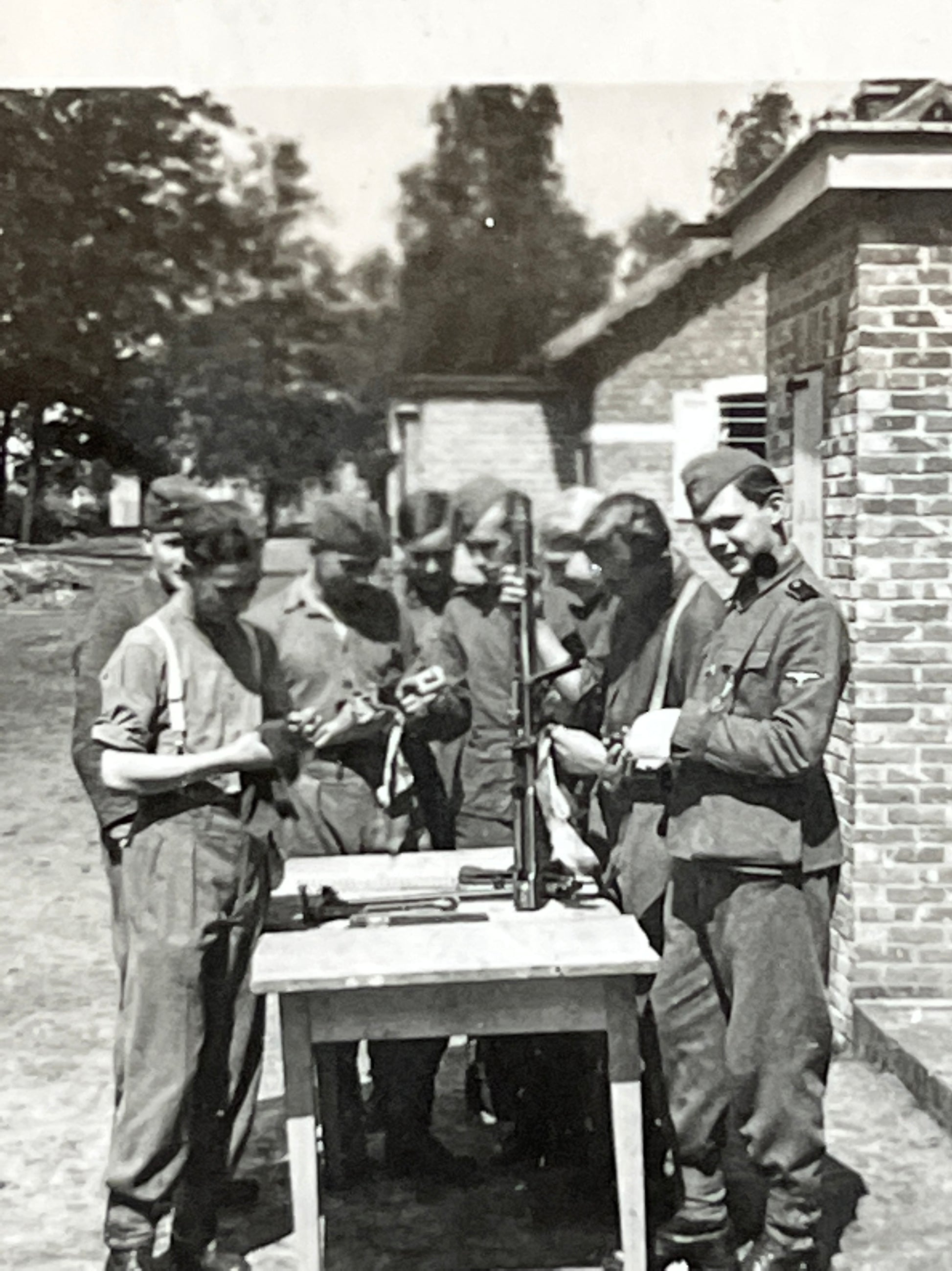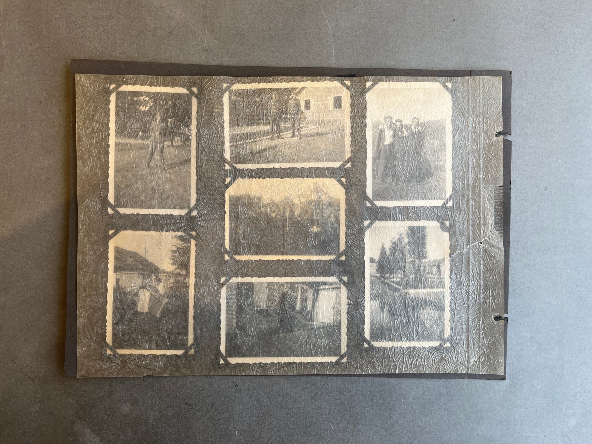 WW2 Tysk Waffen-SS Fotos. Fra Fotoalbum. 13 stk. Skråhuer, hjelme, bæltespænder mv. Original.