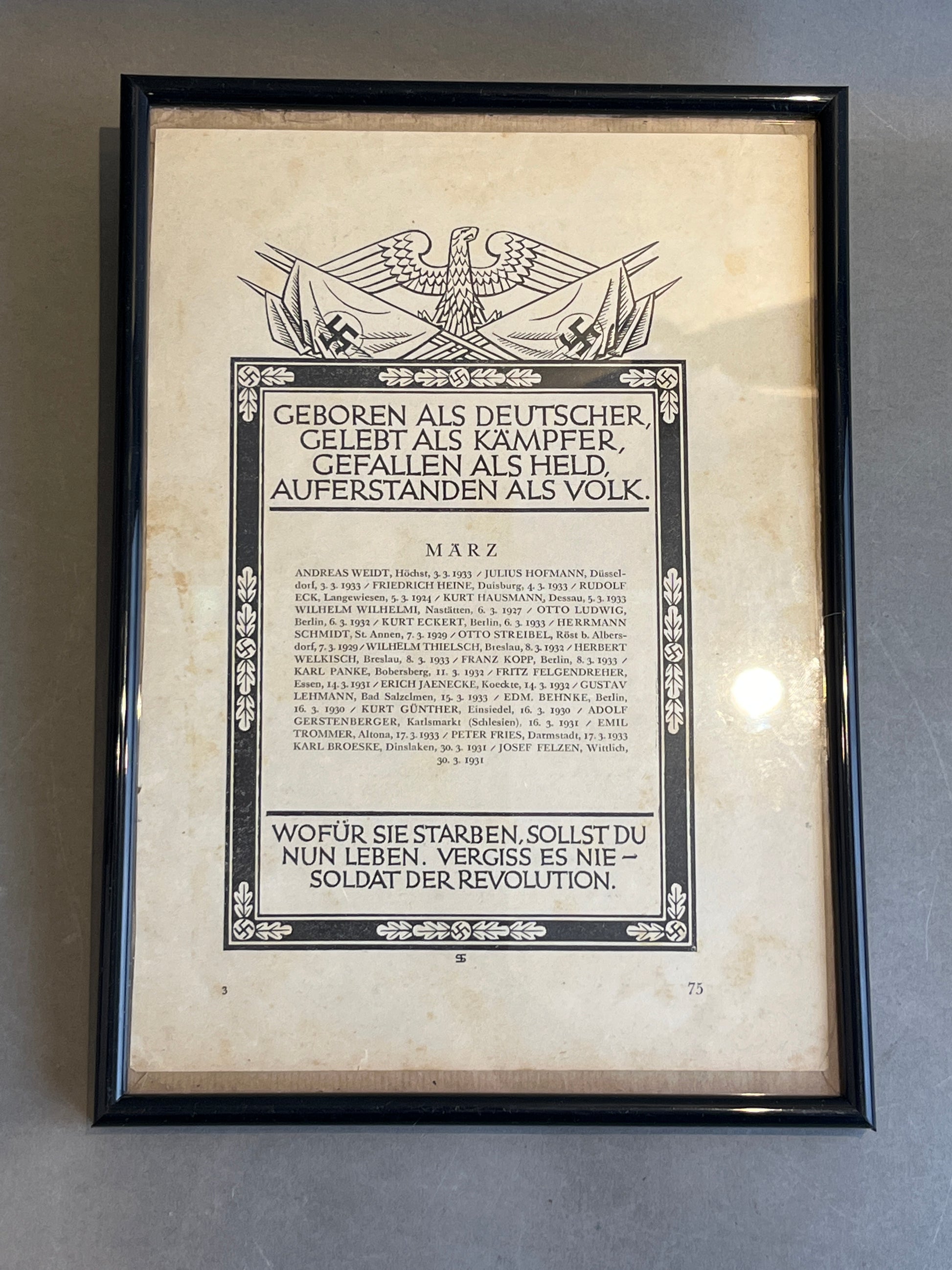 WW2 Tysk NSDAP Udklip/Plakat i nyere ramme. Illustrativ. Original.