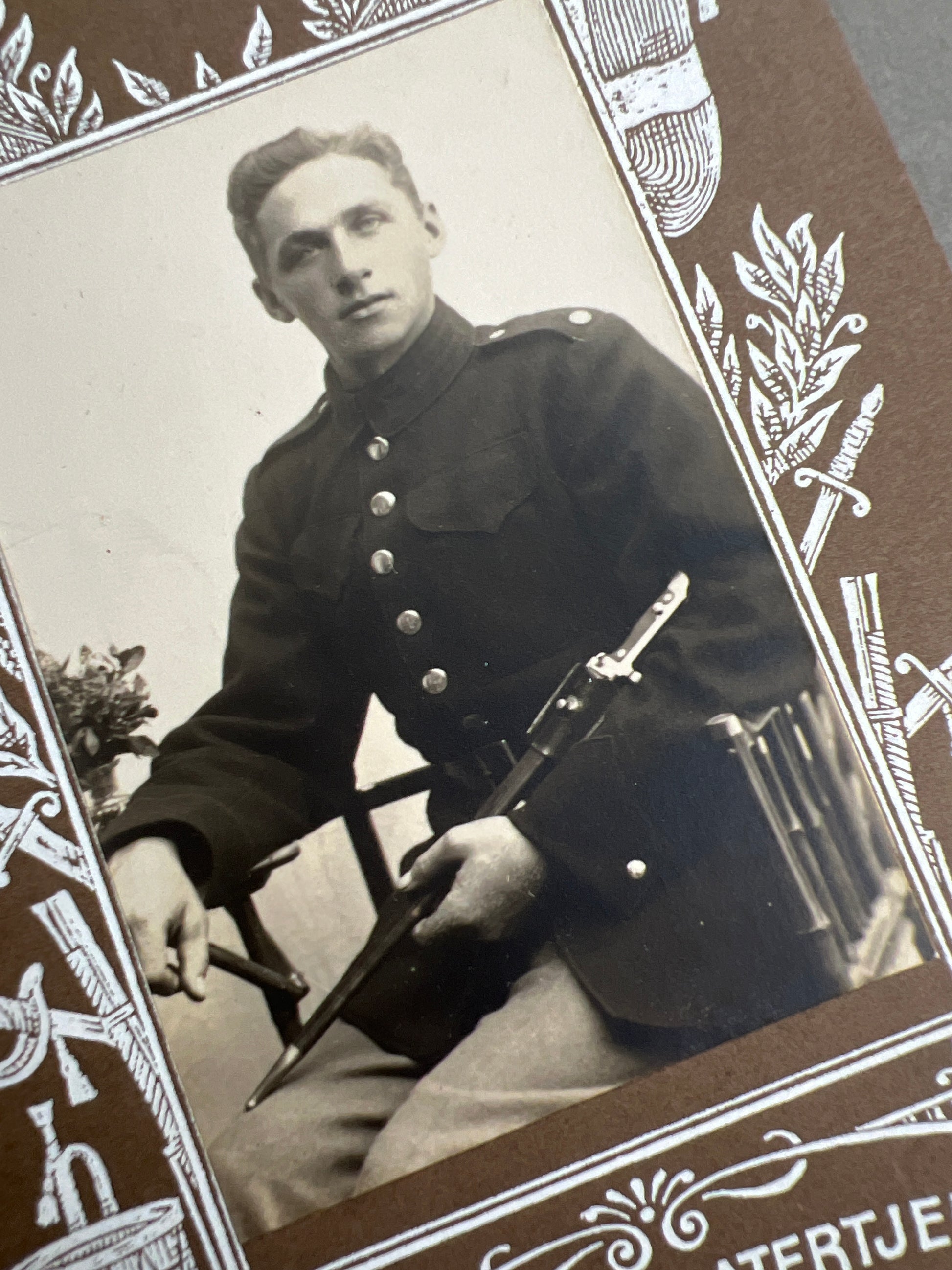 Ældre Dansk Militær/Soldater Foto. Med Gevær M1889 Bajonet. Original.