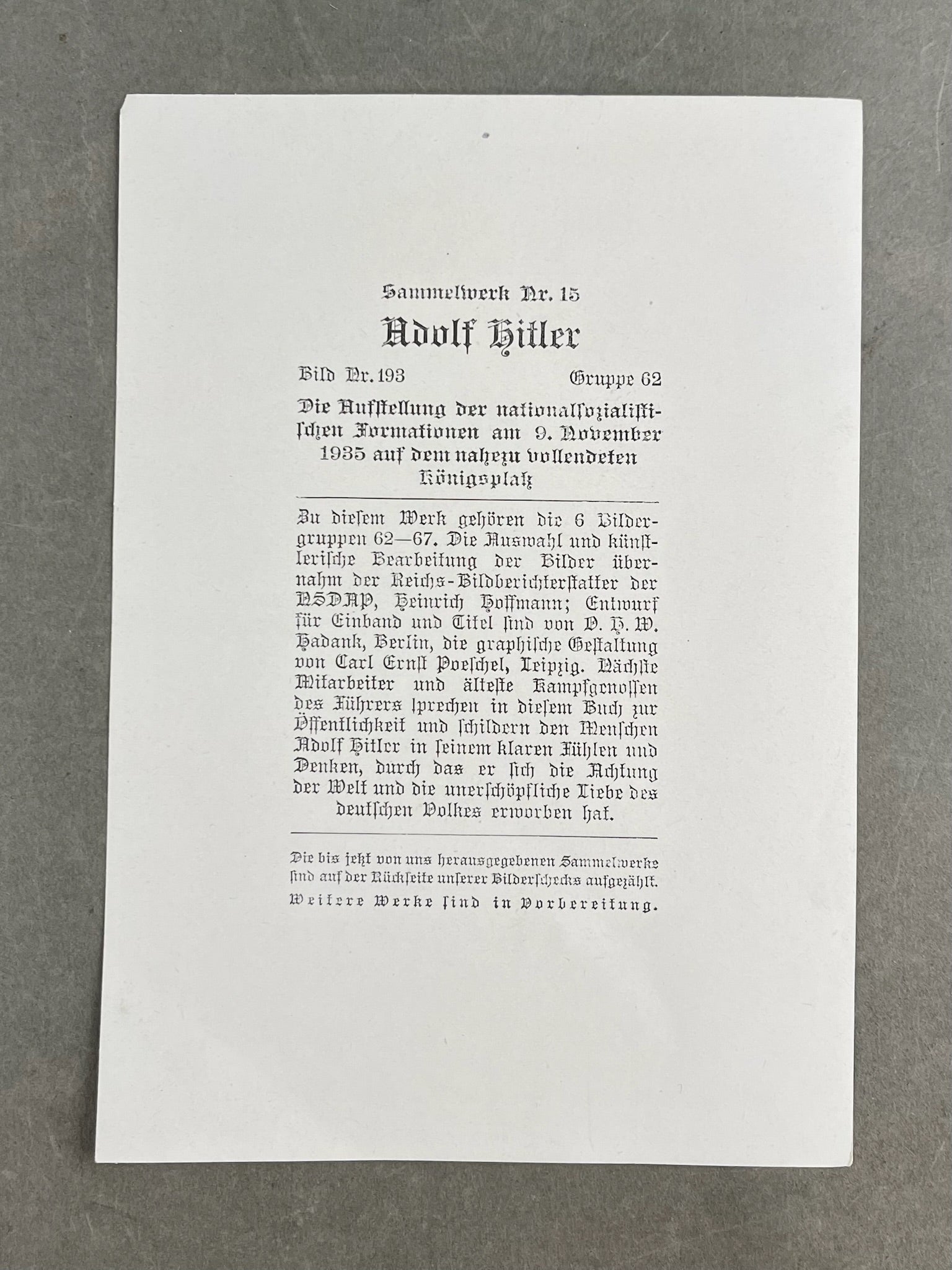 WW2 Tysk "Cigaretten Album" Billede. Original.