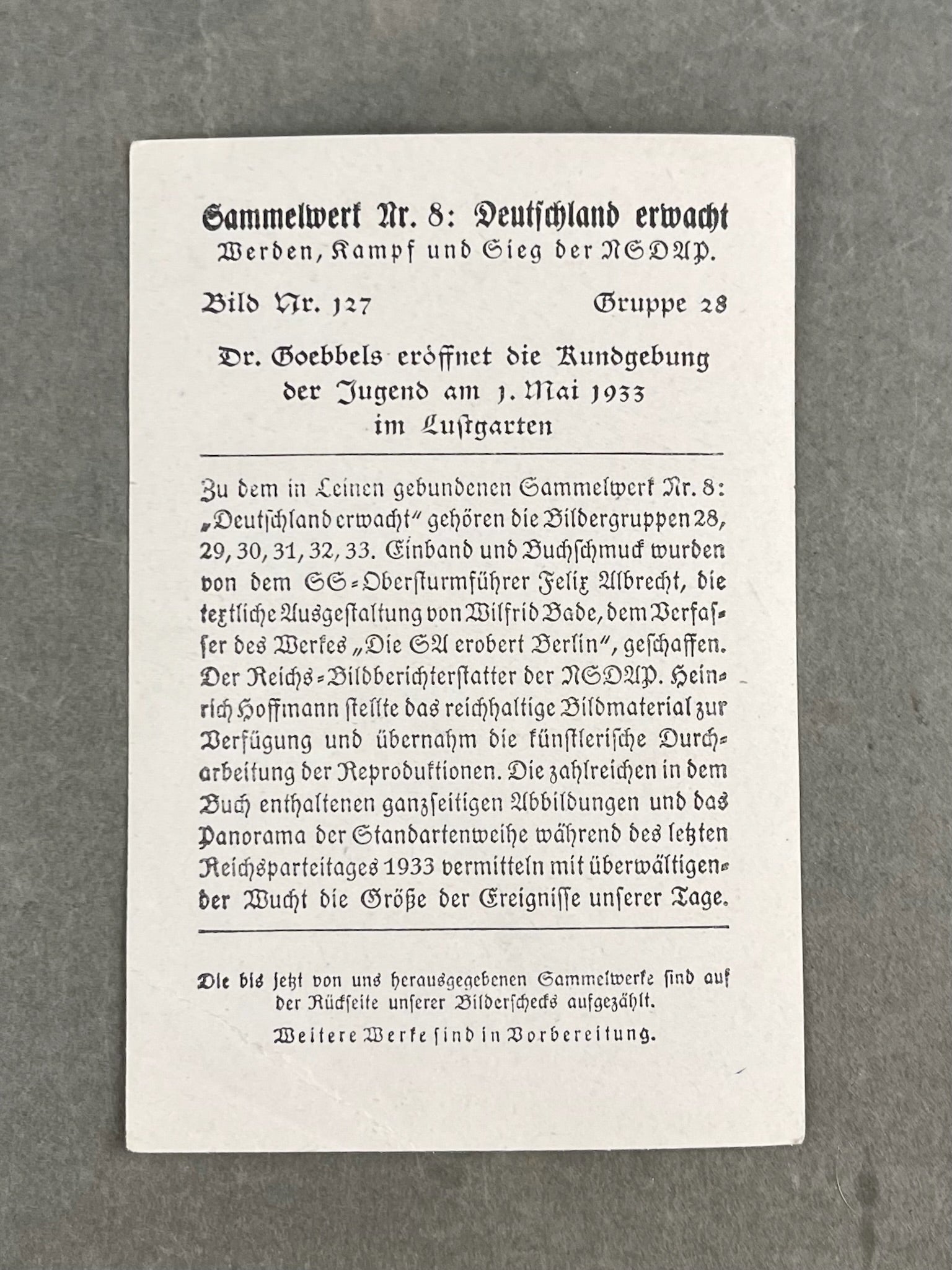 WW2 Tysk "Cigaretten Album" Billede. Godt Goebbels/SA motiv. Original.
