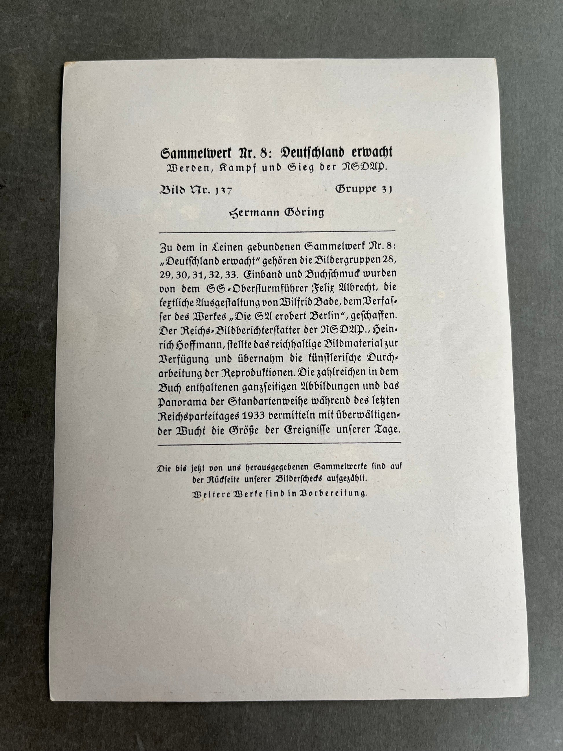 WW2 Tysk "Cigaretten Album" Billede. 12x17 cm. Godt motiv. Original.