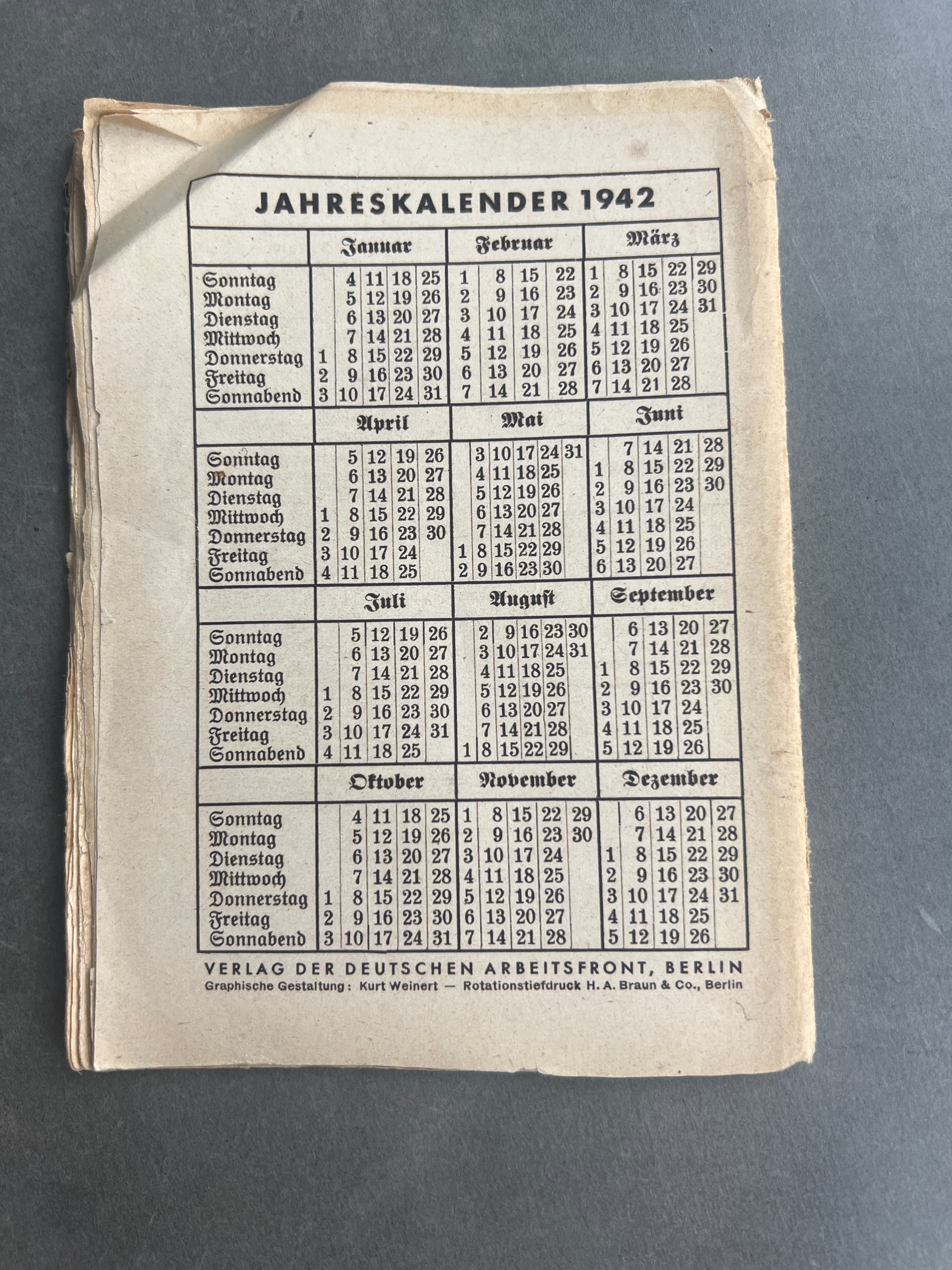 WW2 Tysk DAF Kalender. Original.