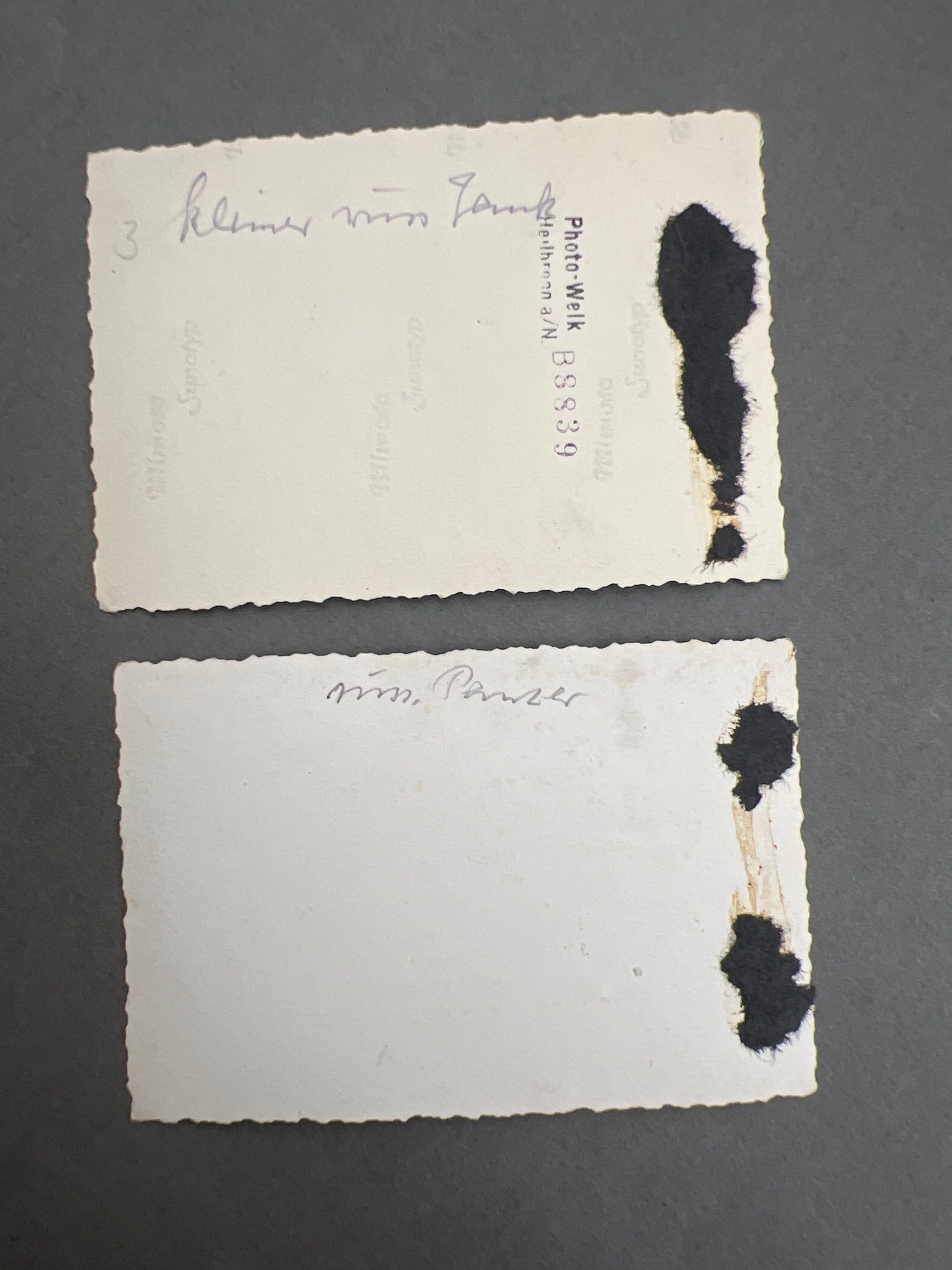 WW2 Tysk Wehrmacht Privatfotos fra Østfronten med russisk Panzer. 2 Sanitäter soldater med armbind og forbindingstasker. Original.