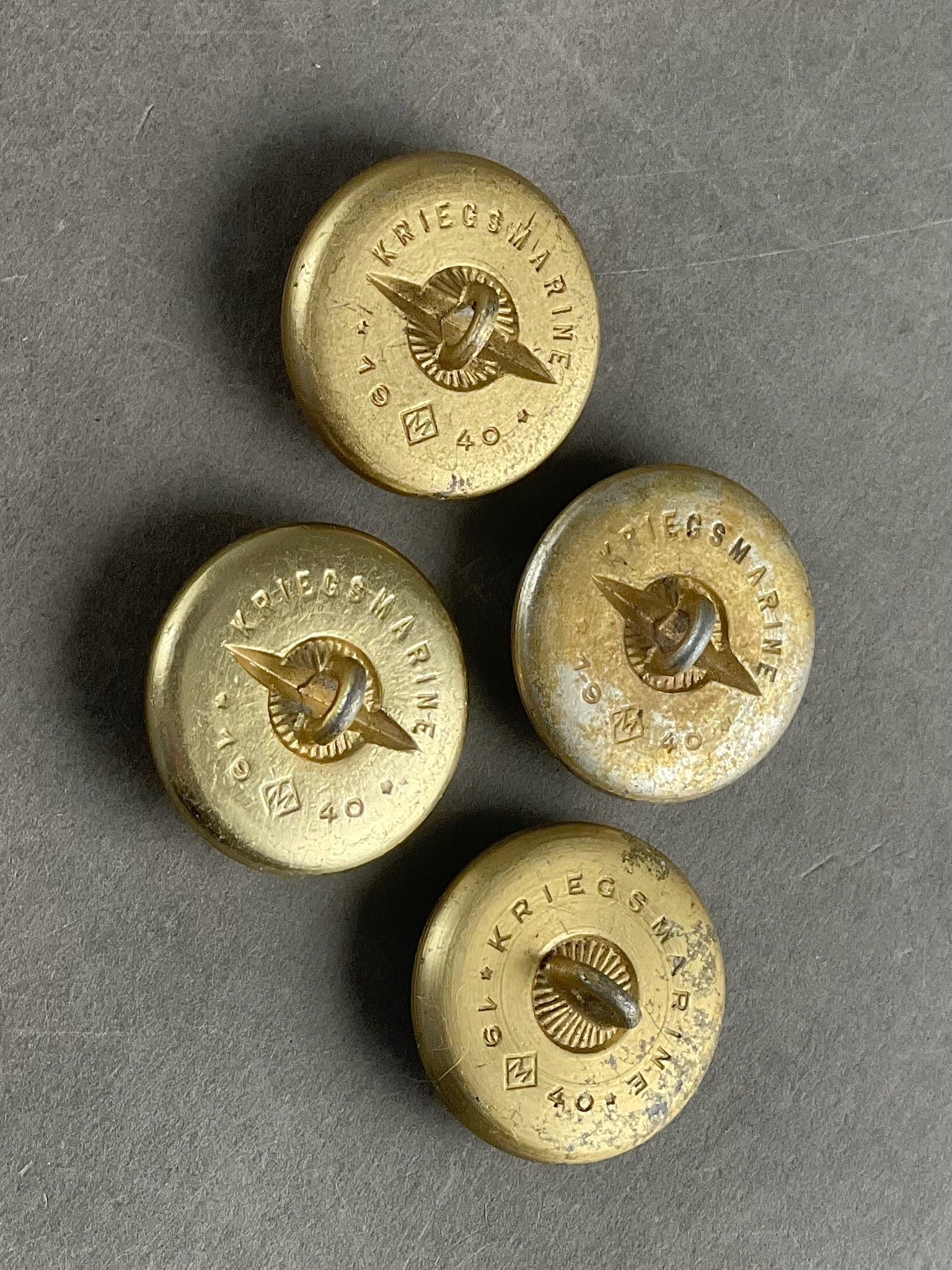WW2 Tysk Lot af 4 Kriegsmarine Uniformsknapper. Original.
