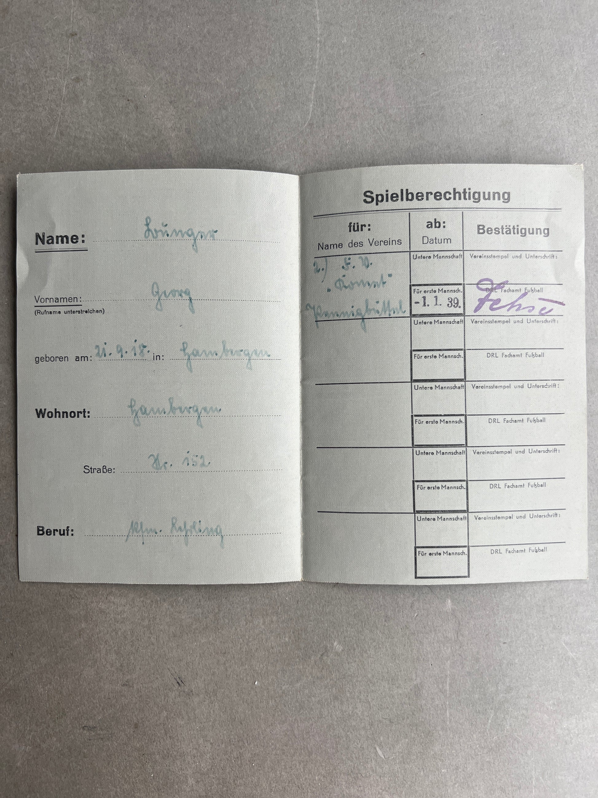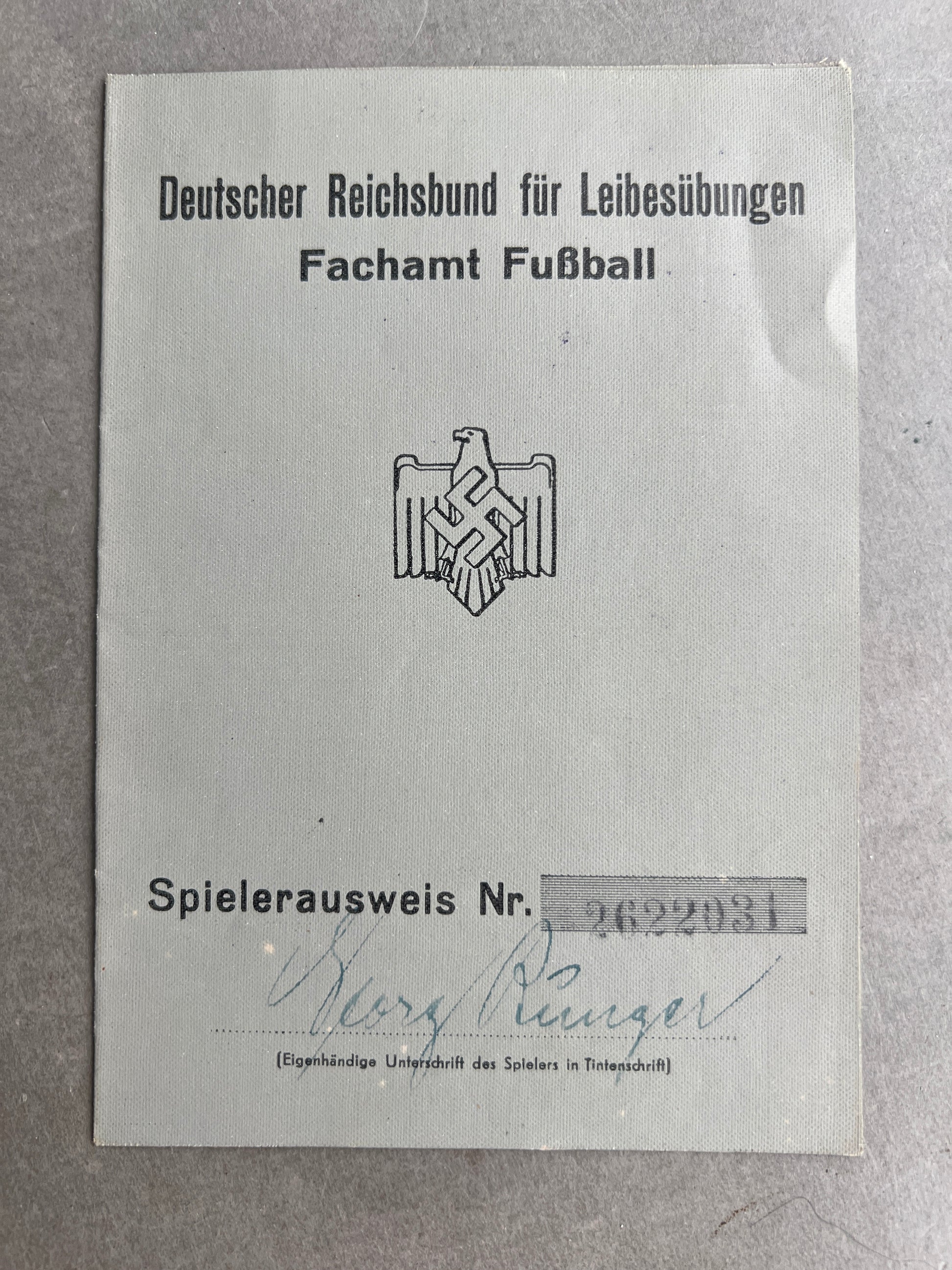 WW2 Tysk DRL"Fussball Spielerausweis". Sjælden. Original.