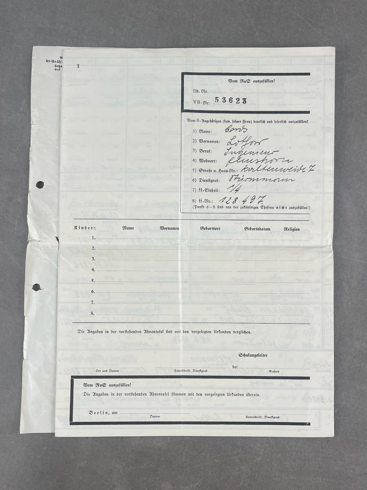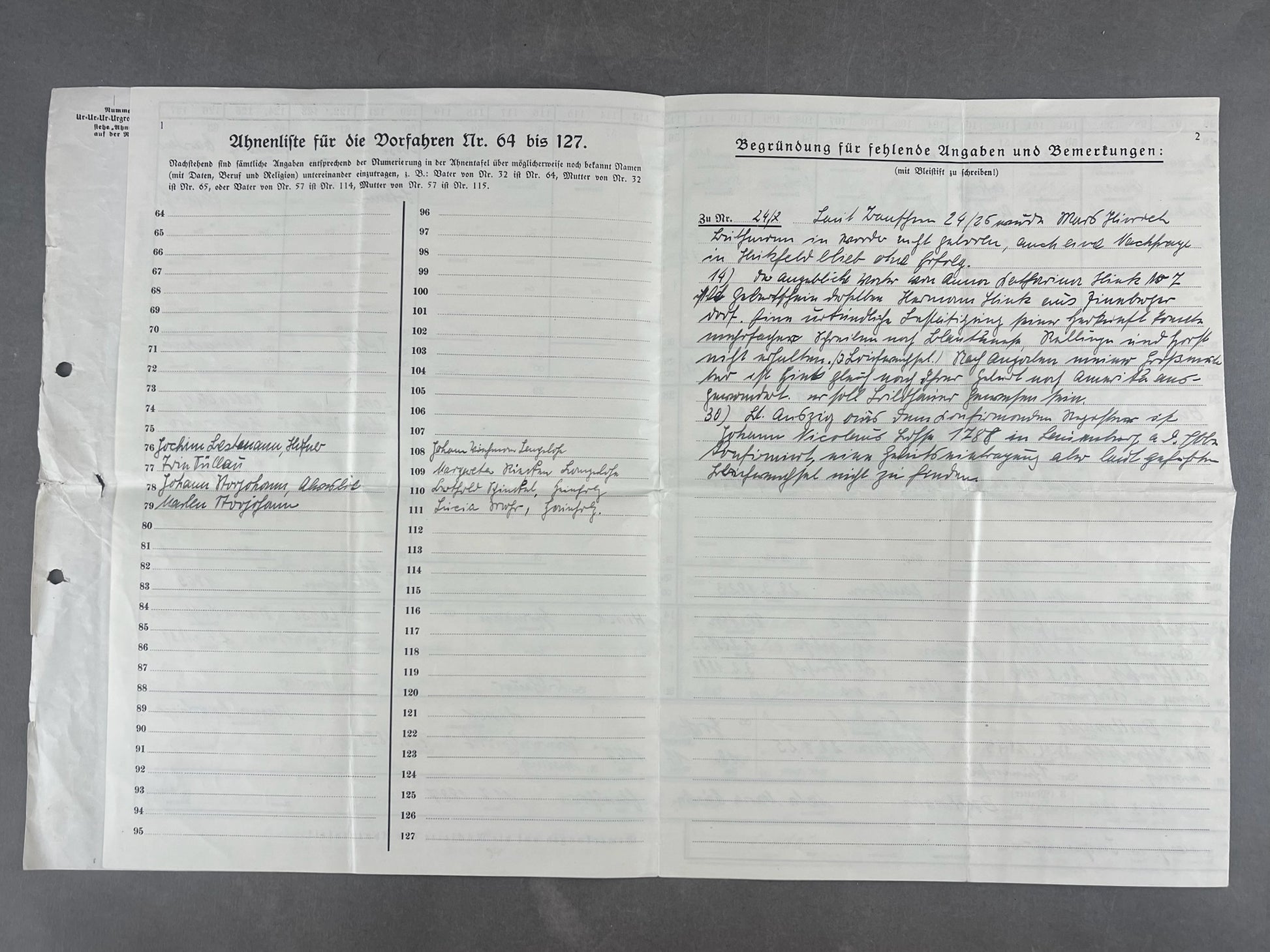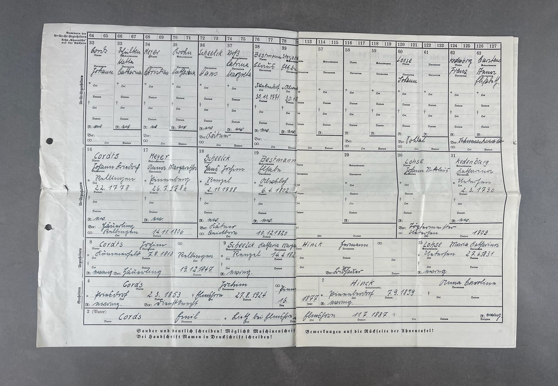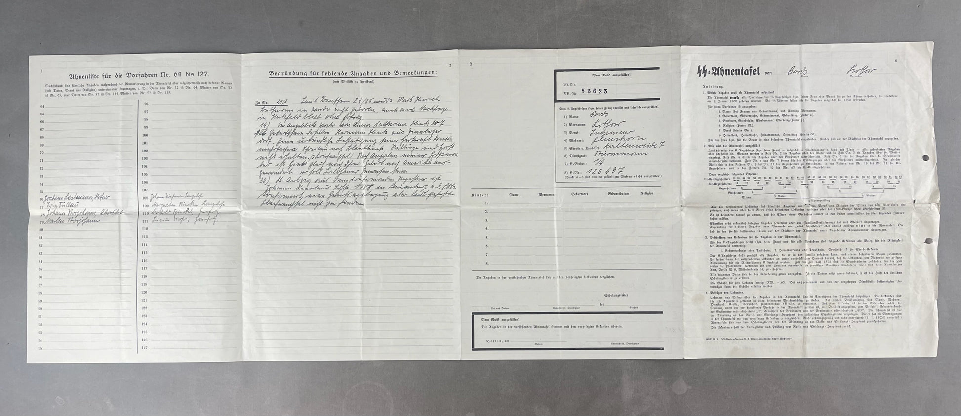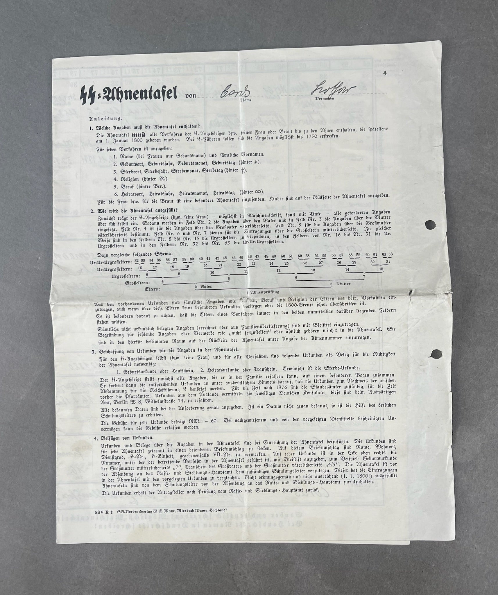 WW2 Tysk Waffen-SS "SS-Ahnentafel" (Stamtræ). Sjælden. Original.